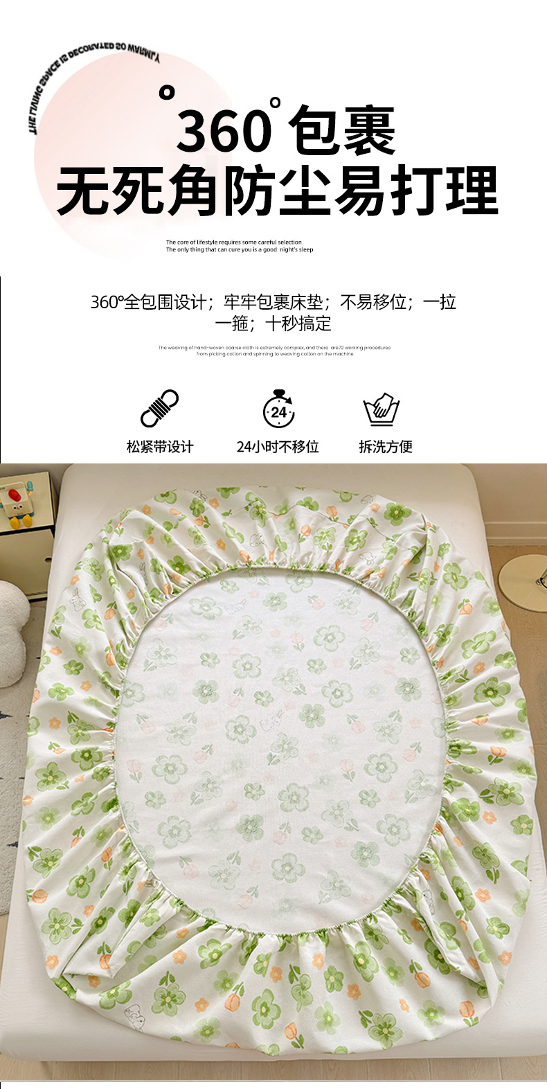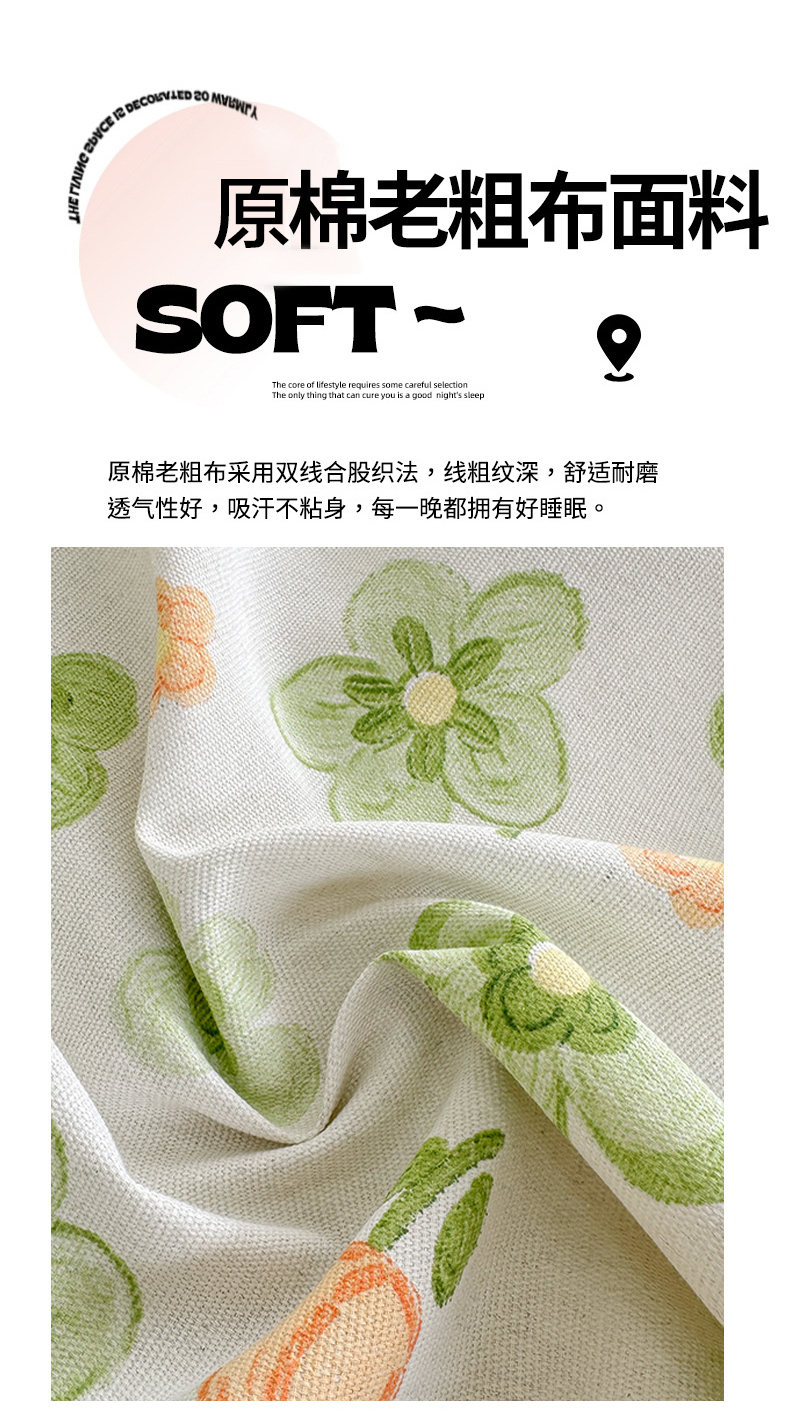 爱彼家纺 2026新款舒适透气老粗布凉席印花床笠单件-床笠三件套 老粗布床笠-绿果花香