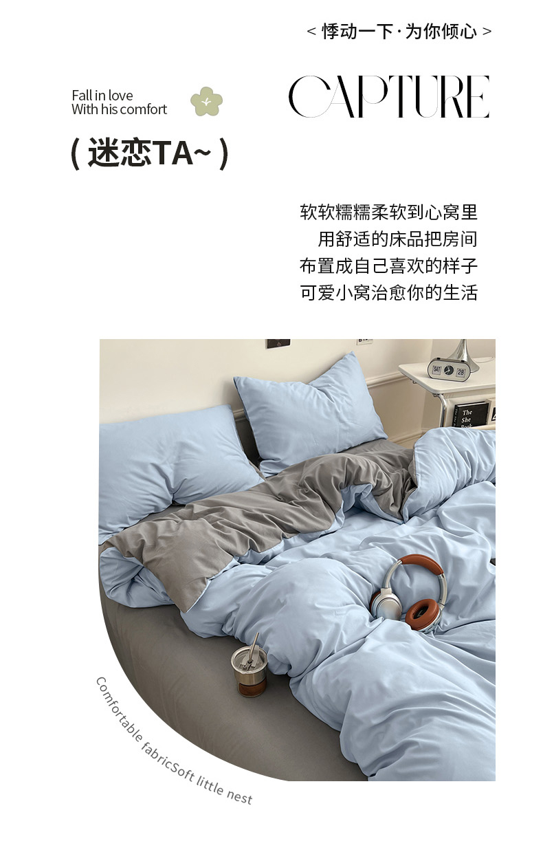 当前位置: 91家纺网 > 商品网购 > 床品套件 > 四件套 > 水洗棉四件套 > 世爵 2026新款10A抗菌亲肤水洗棉双拼四件套 天空蓝浅灰