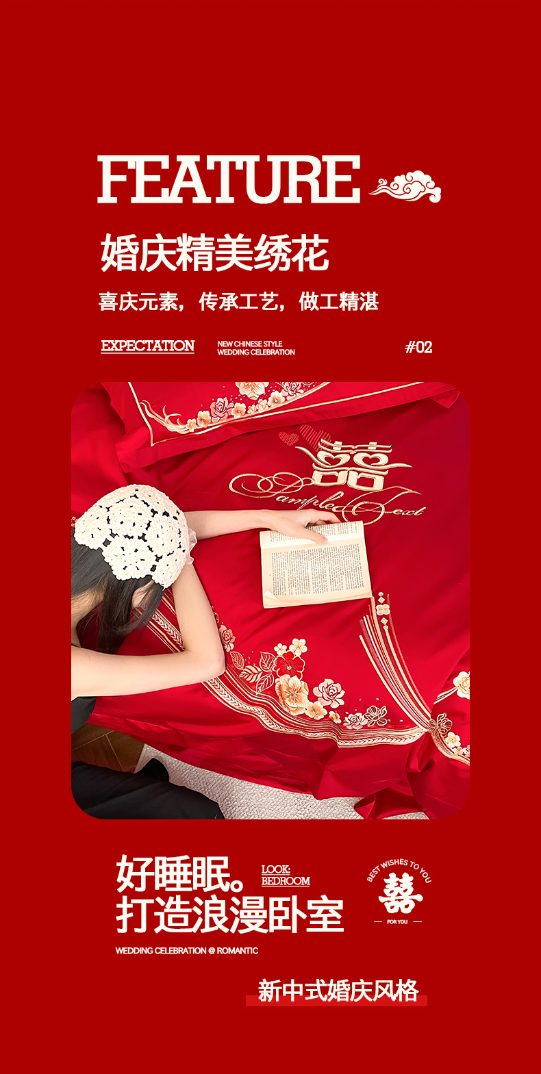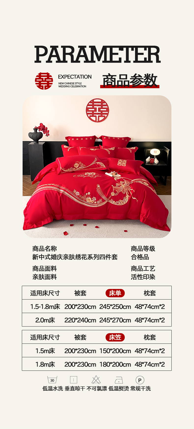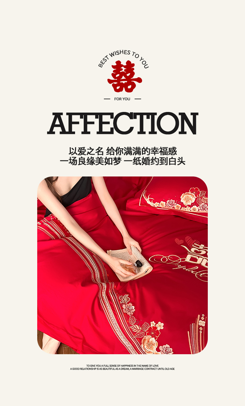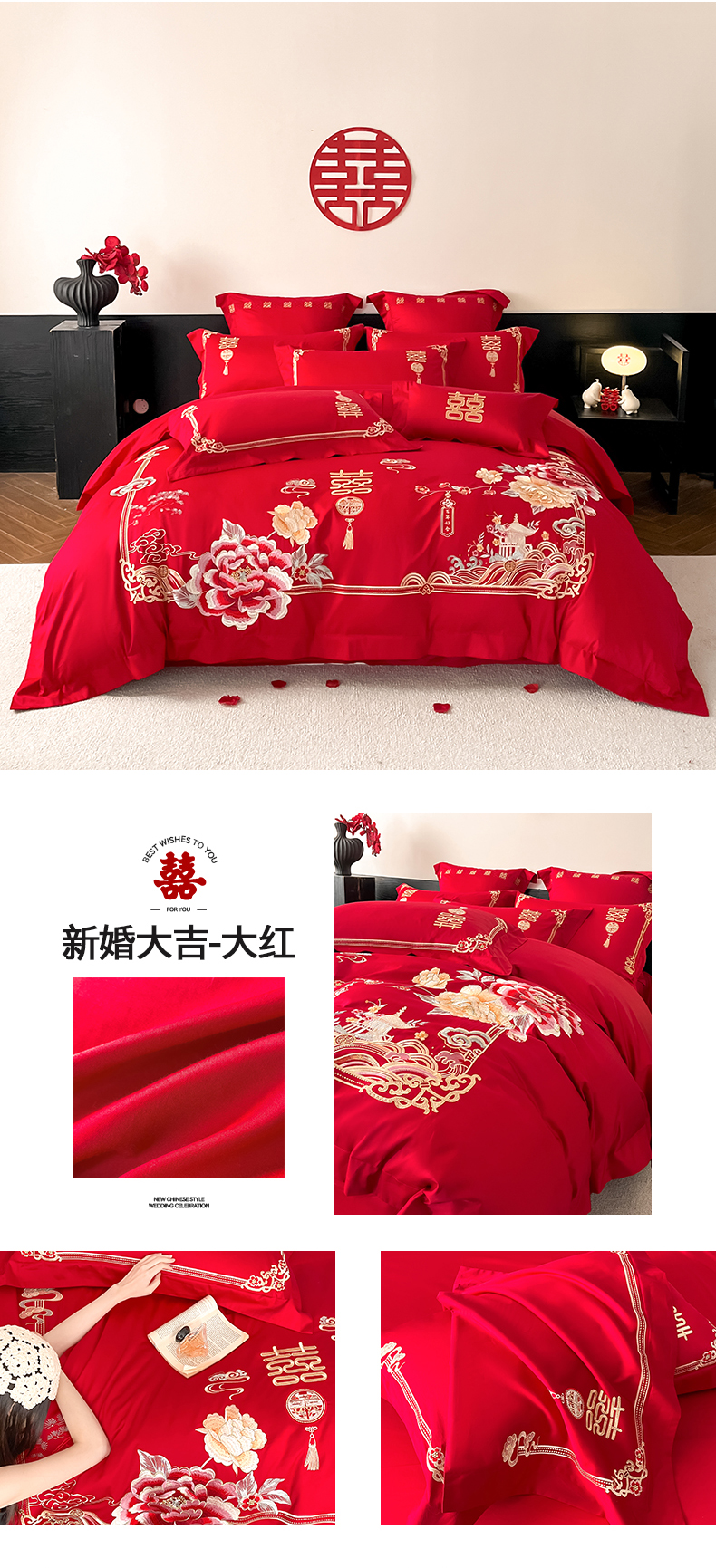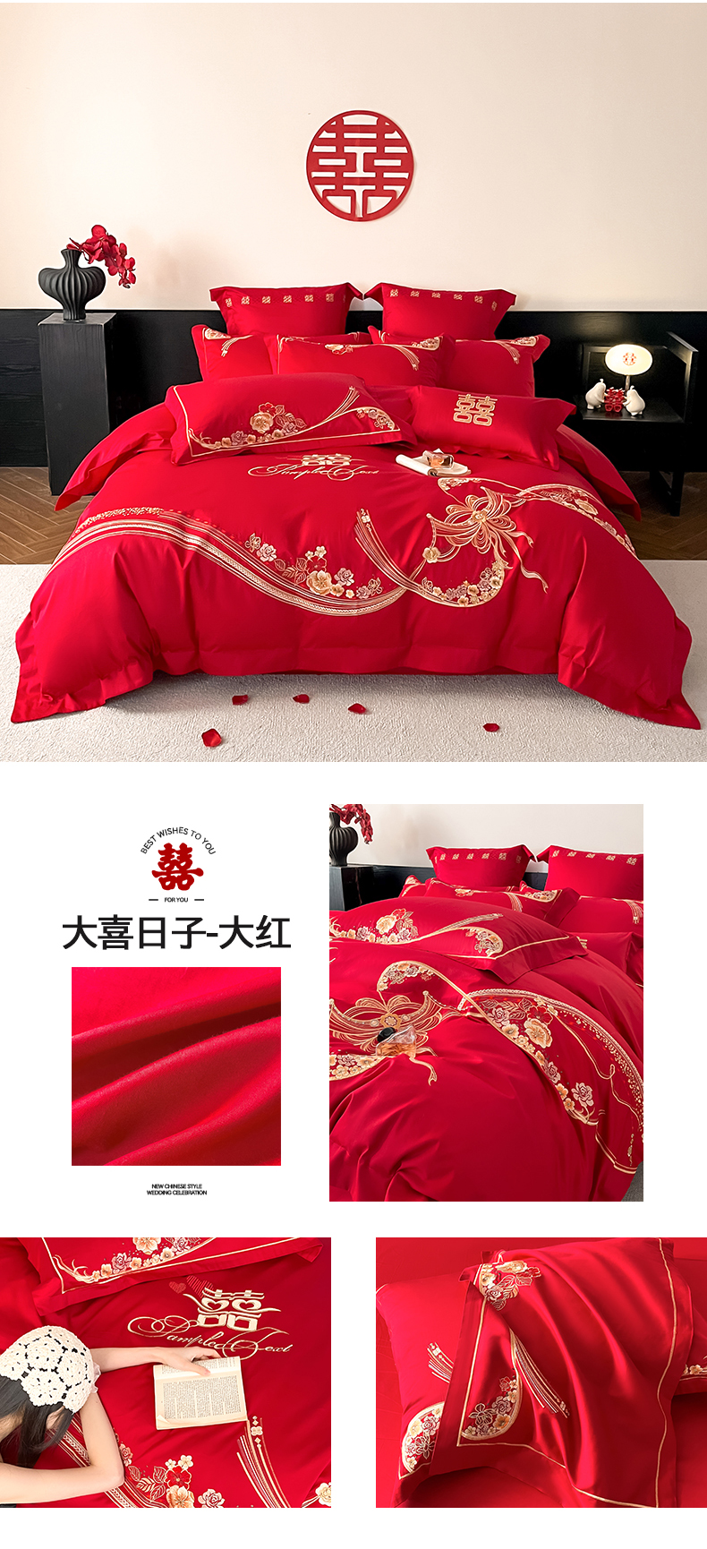 当前位置: 91家纺网 > 商品网购 > 床品套件 > 四件套 > 婚庆四件套 > 置顶家纺 2026新款新中式亲肤婚庆绣花四件套 大喜日子-大红