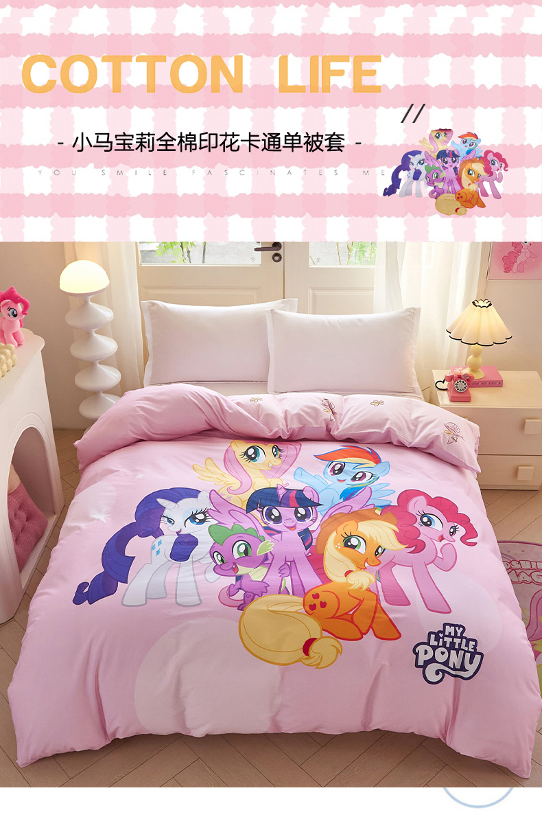 商品名称:蘭菲家纺 2026新款全棉纯棉大版卡通单被套被套单件-小马宝莉 粉色.宝莉