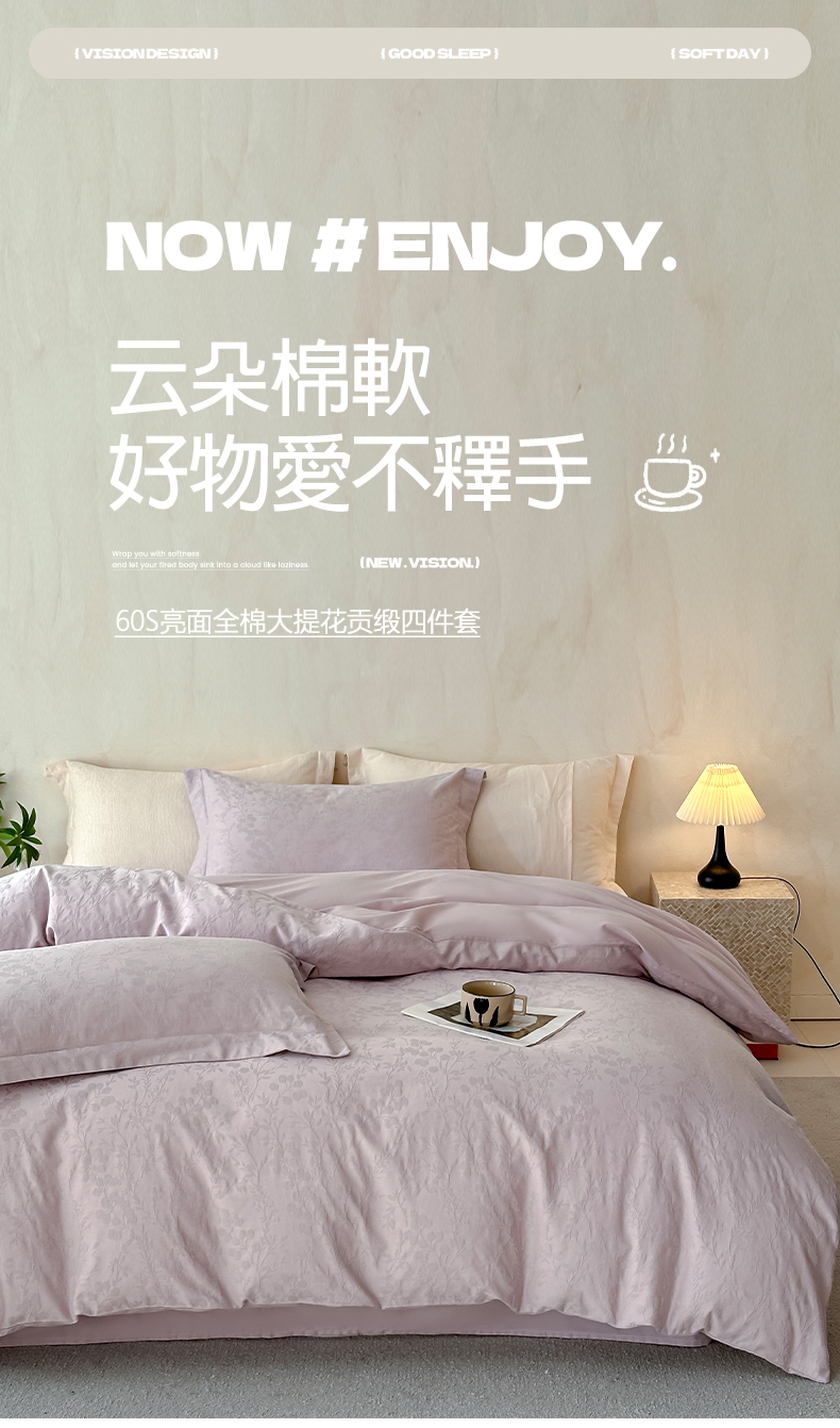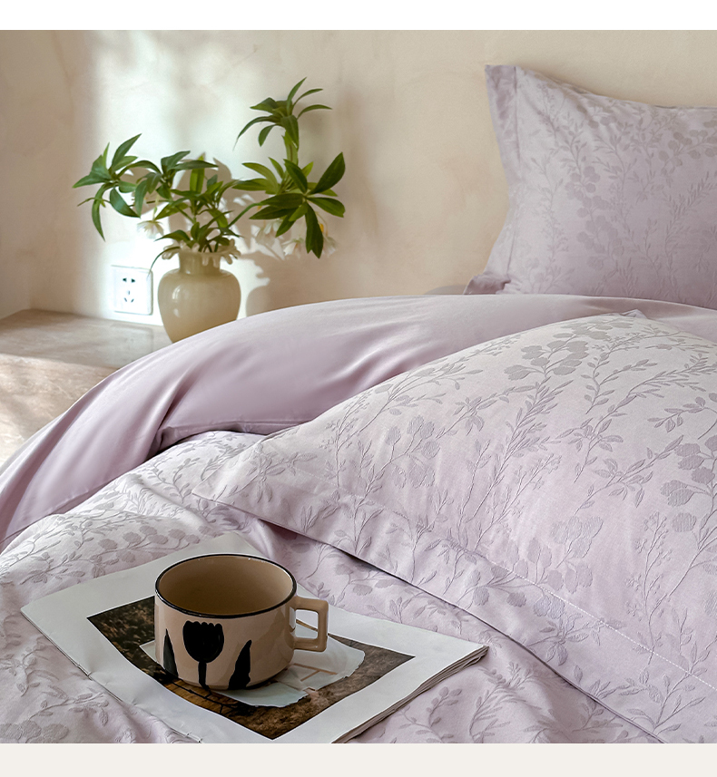 当前位置: 91家纺网 > 商品网购 > 床品套件 > 四件套 > 贡缎全棉四件套 > 莱茵家居 2026新款A类60支长绒棉纯棉提花贡缎大提花四件套光泽绸缎感轻奢风 缃影-紫