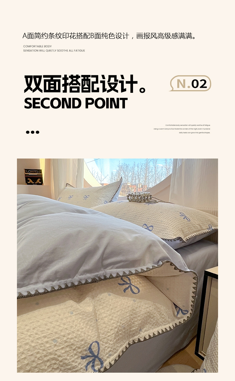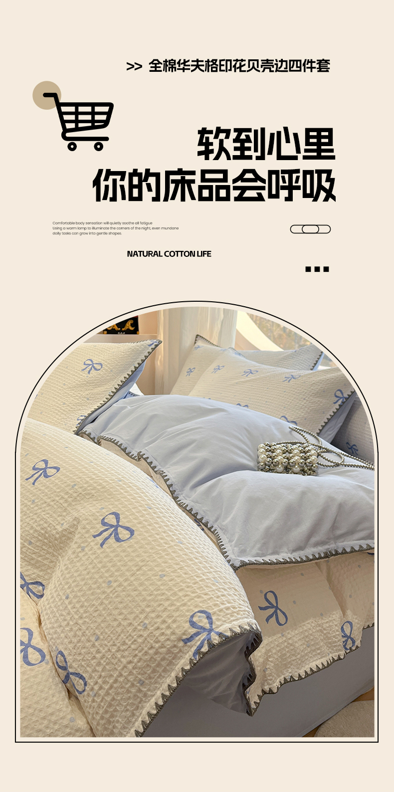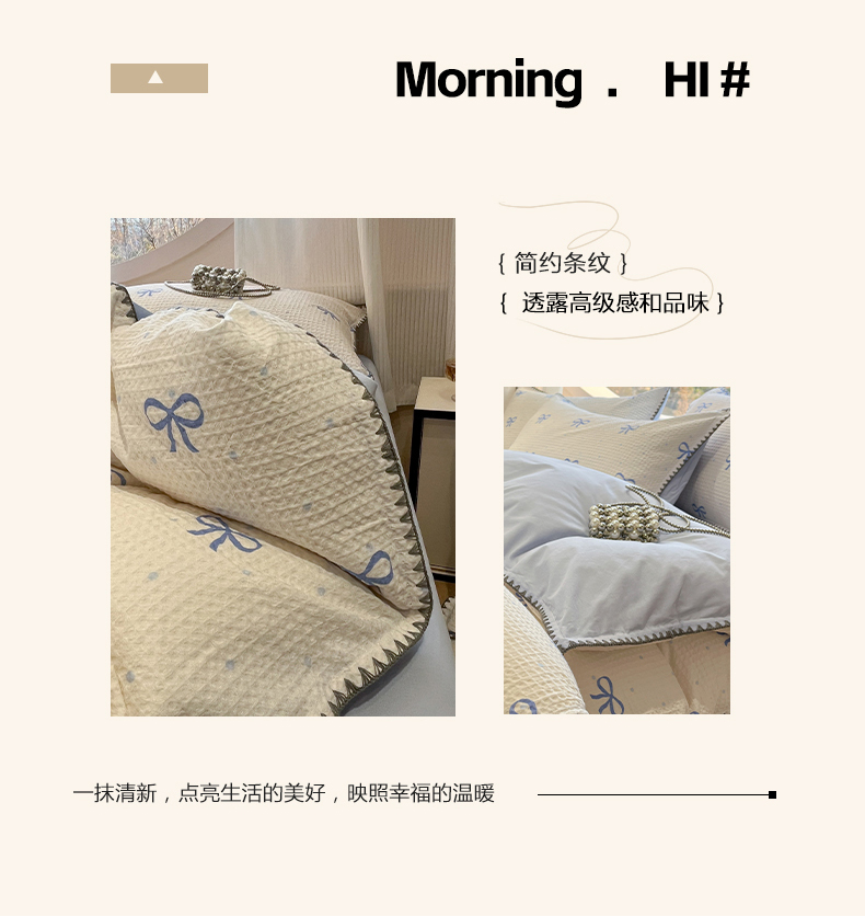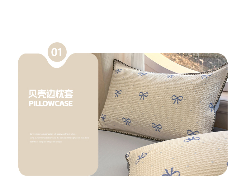 当前位置: 91家纺网 > 商品网购 > 床品套件 > 四件套 > 全棉普通四件套 > 莱茵家居 2026新款A类全棉华夫格印花贝壳边套件-华夫系列 华夫-蓝铃