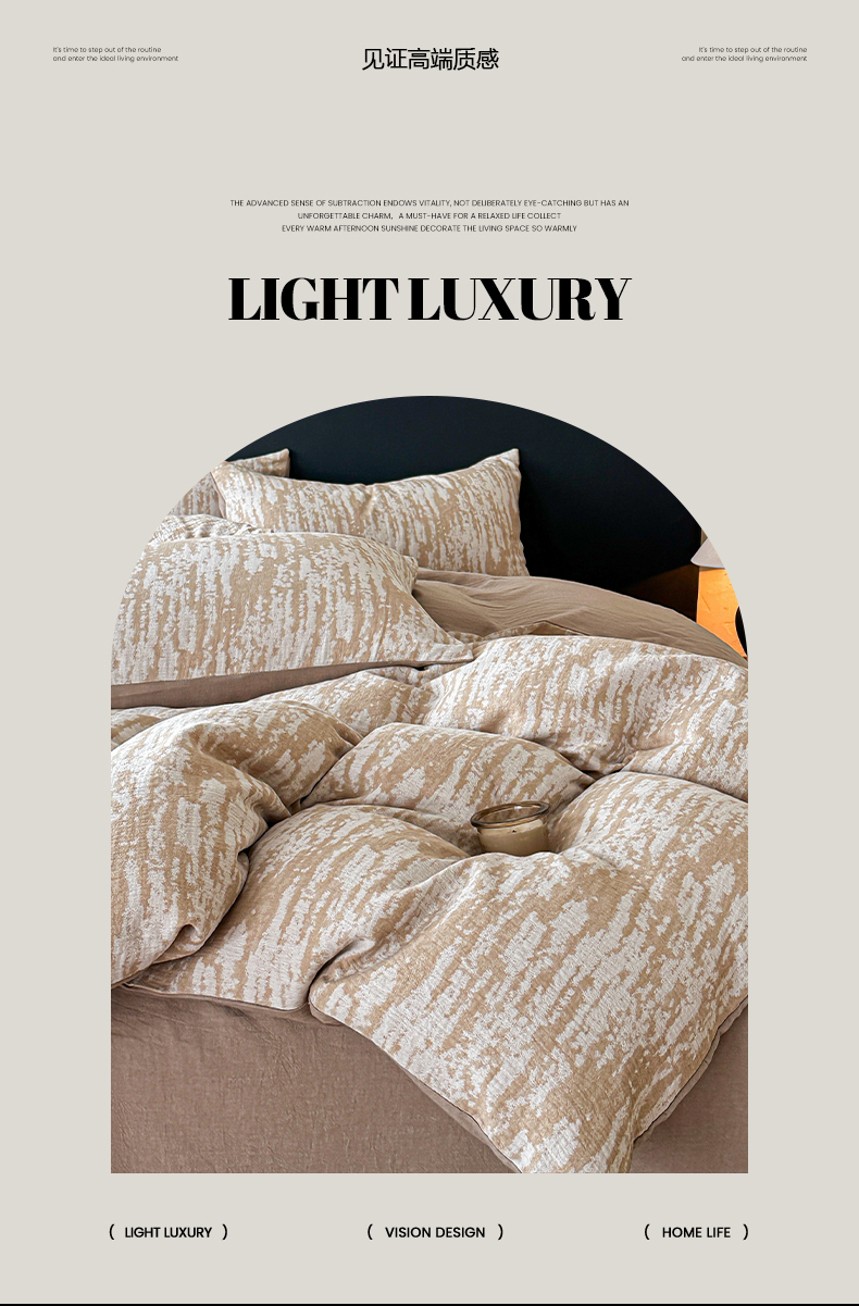 (总)莱茵家居 2026新款A类60支全棉纯棉复古侘寂风色织提花四件套-墨隙系列,斑斓-深灰,豹纹-卡其,豹纹-深灰,墨隙-卡其,墨隙-深灰