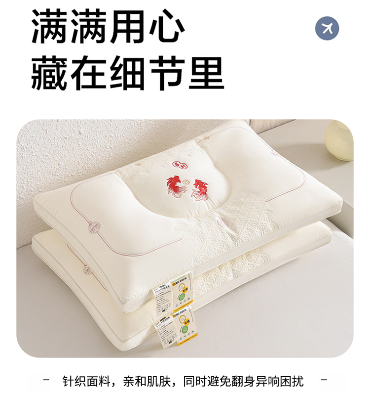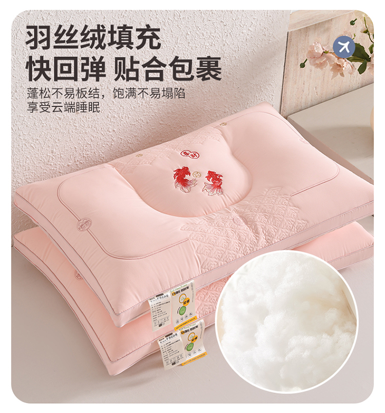 商品名称:雅晨枕芯 2026新款绣花款遇见锦鲤分区定型枕学生枕头成人枕芯 遇见锦鲤-灰色一对装