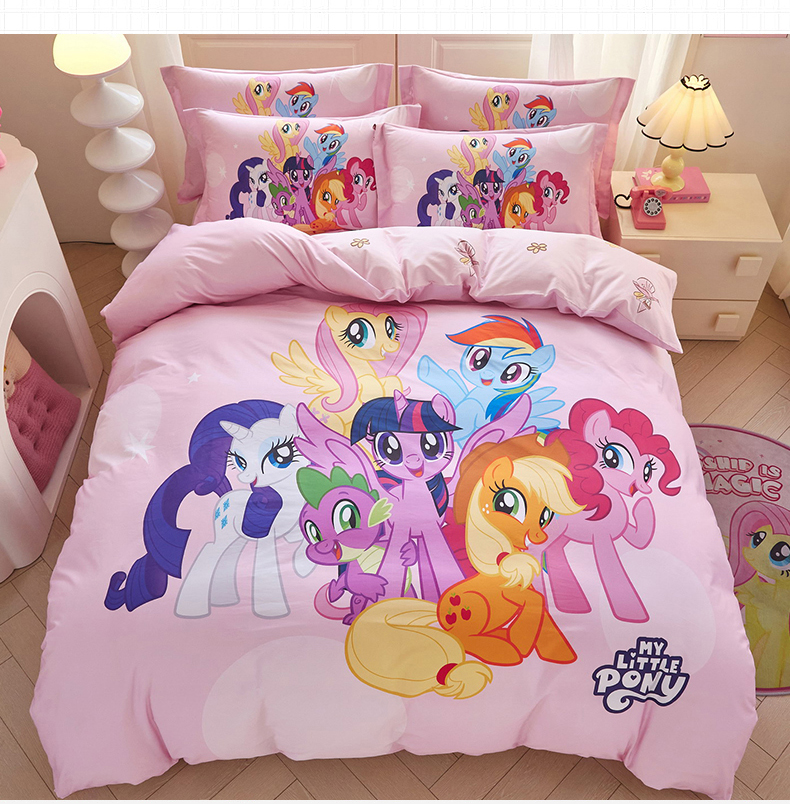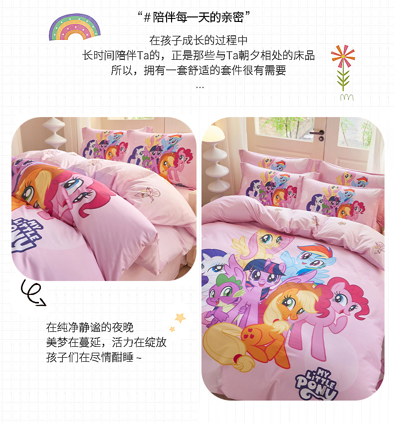 当前位置: 91家纺网 > 商品网购 > 床品套件 > 四件套 > 全棉普通四件套 > 蘭菲家纺 2026新款全棉纯棉大版卡通四件套-小马宝莉 大家族.宝莉