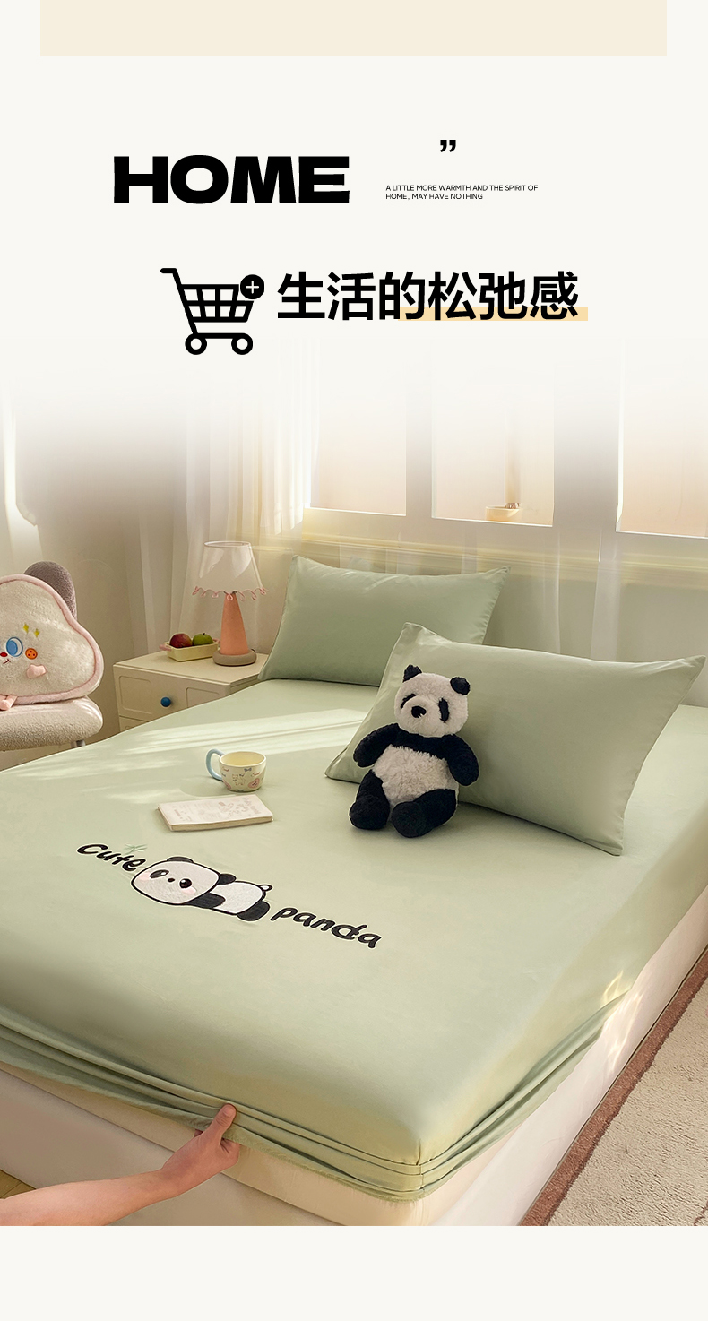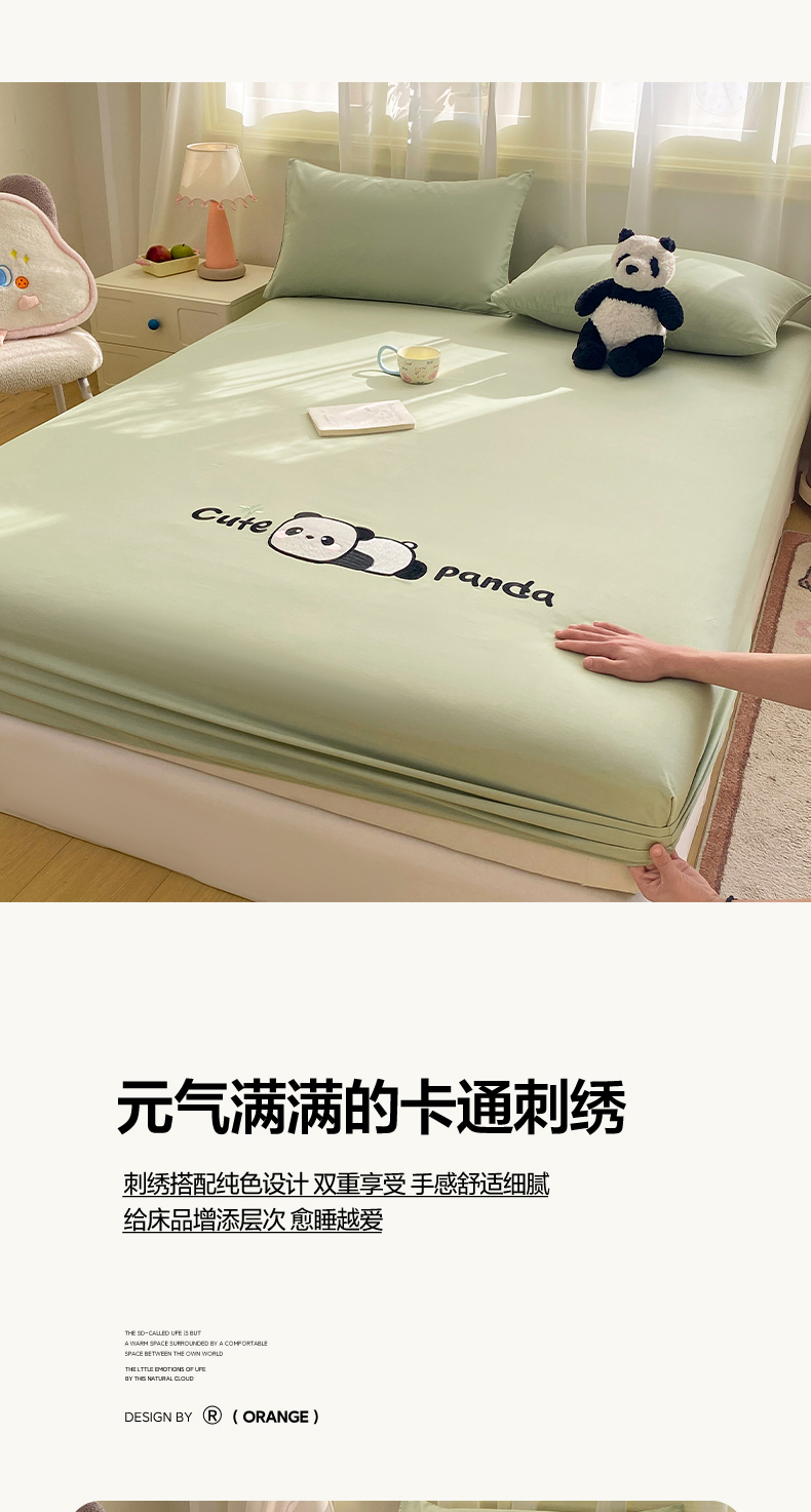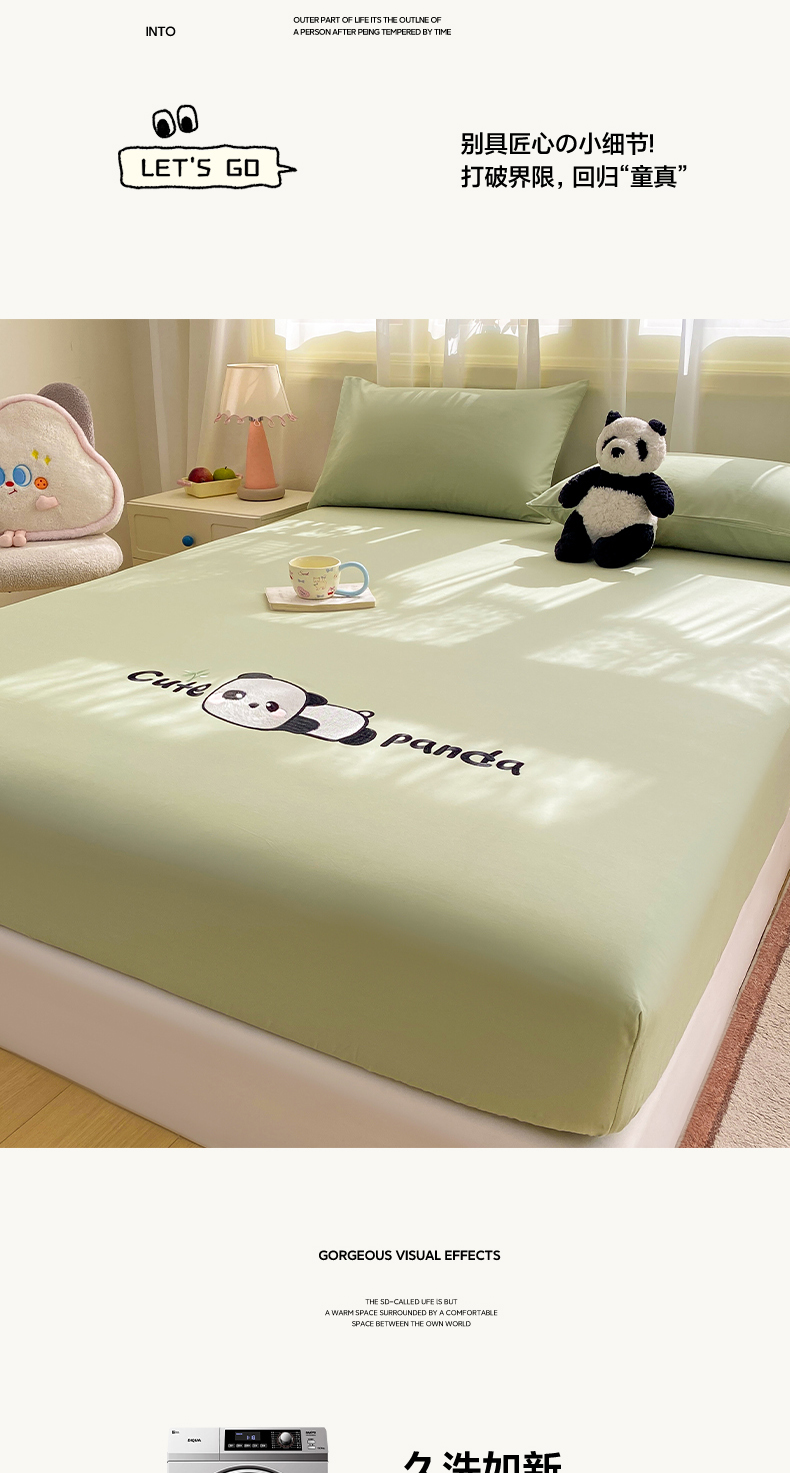 恋人优选 2026新款爬爬熊刺绣全棉纯棉单床笠床笠单件(专版花型 盗版必究) 爬爬熊刺绣果绿