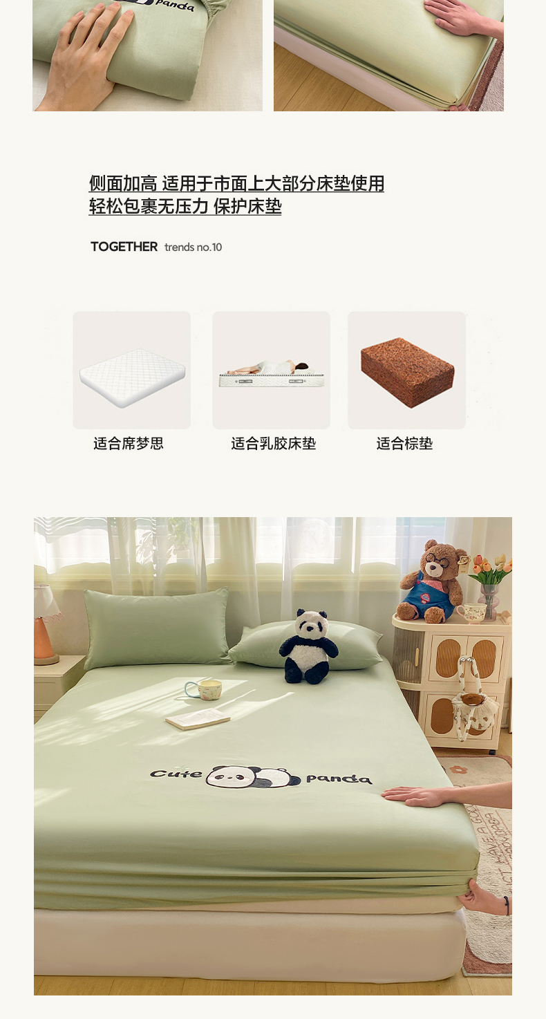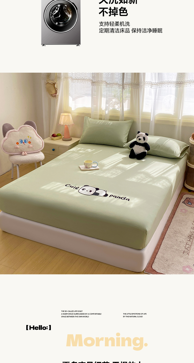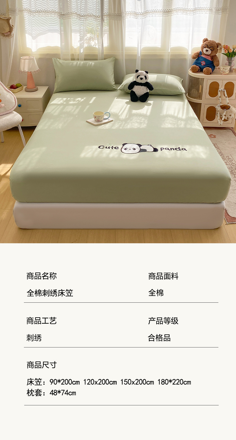 商品名称:恋人优选 2026新款爬爬熊刺绣全棉纯棉单床笠床笠单件(专版花型 盗版必究) 爬爬熊刺绣果绿