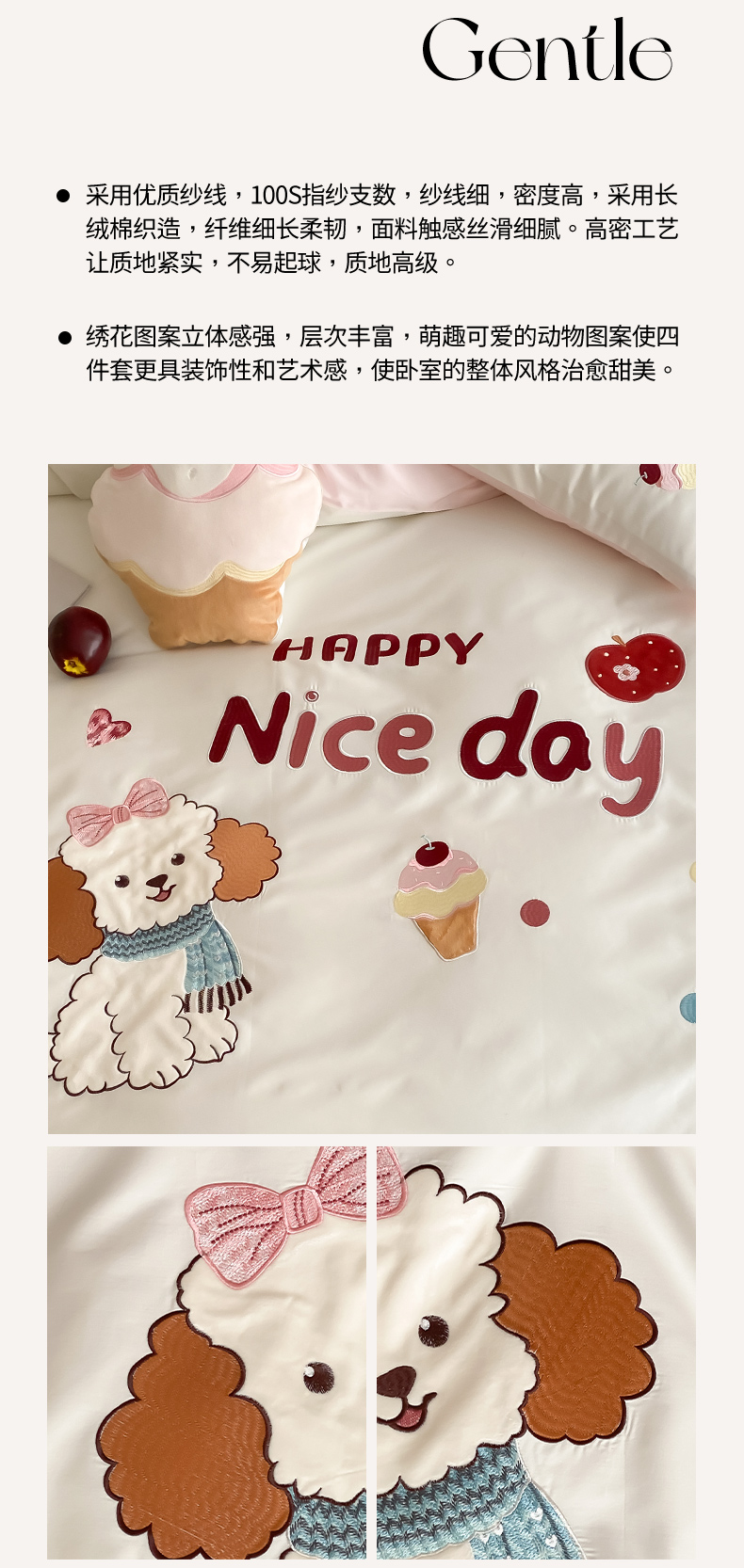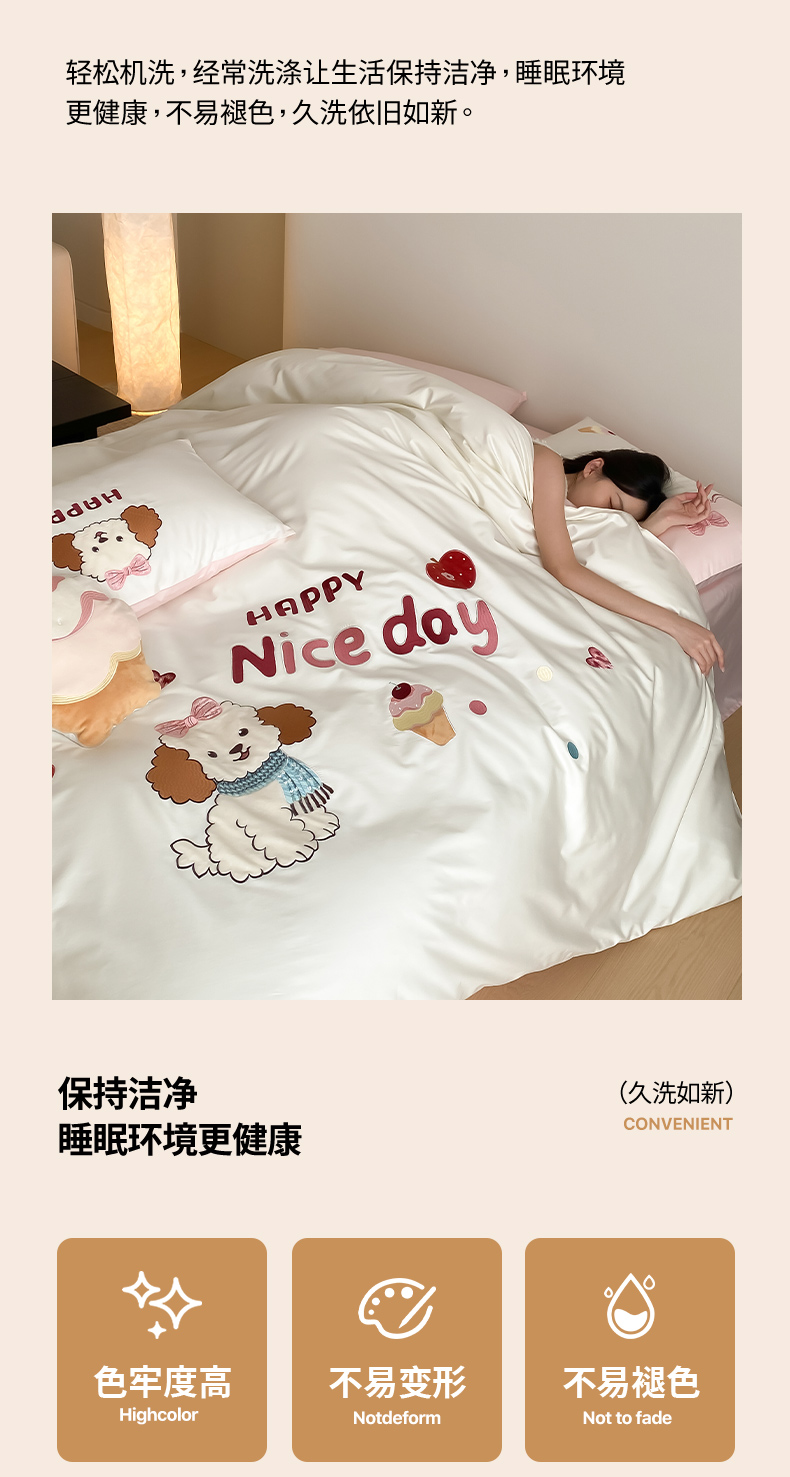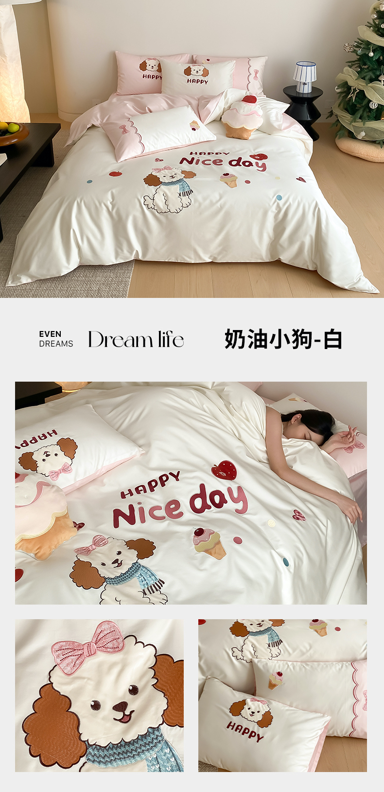 当前位置: 91家纺网 > 商品网购 > 床品套件 > 四件套 > 长绒棉四件套 > (总)极简 2026新款100s长绒棉纯棉刺绣四件套-奶油小狗