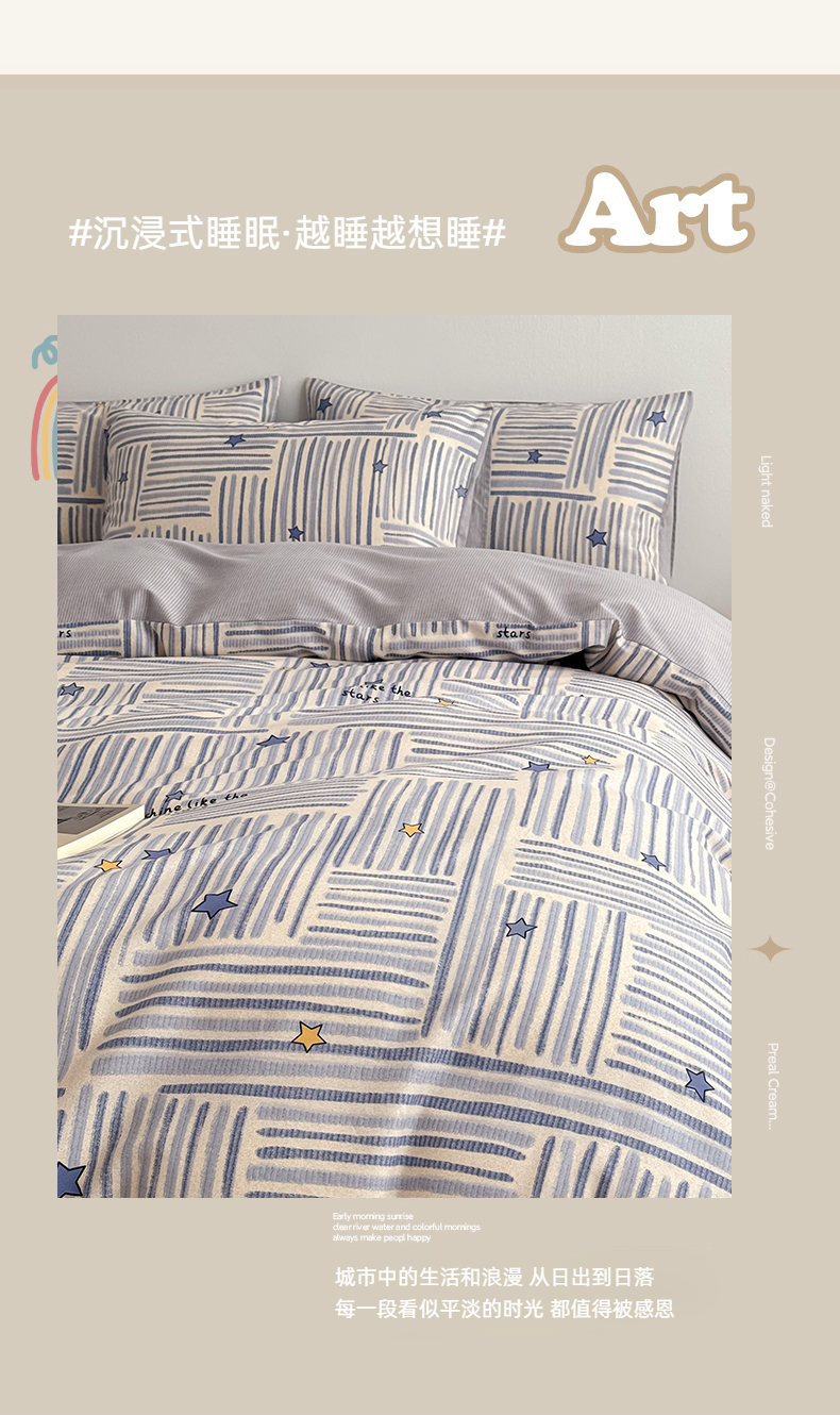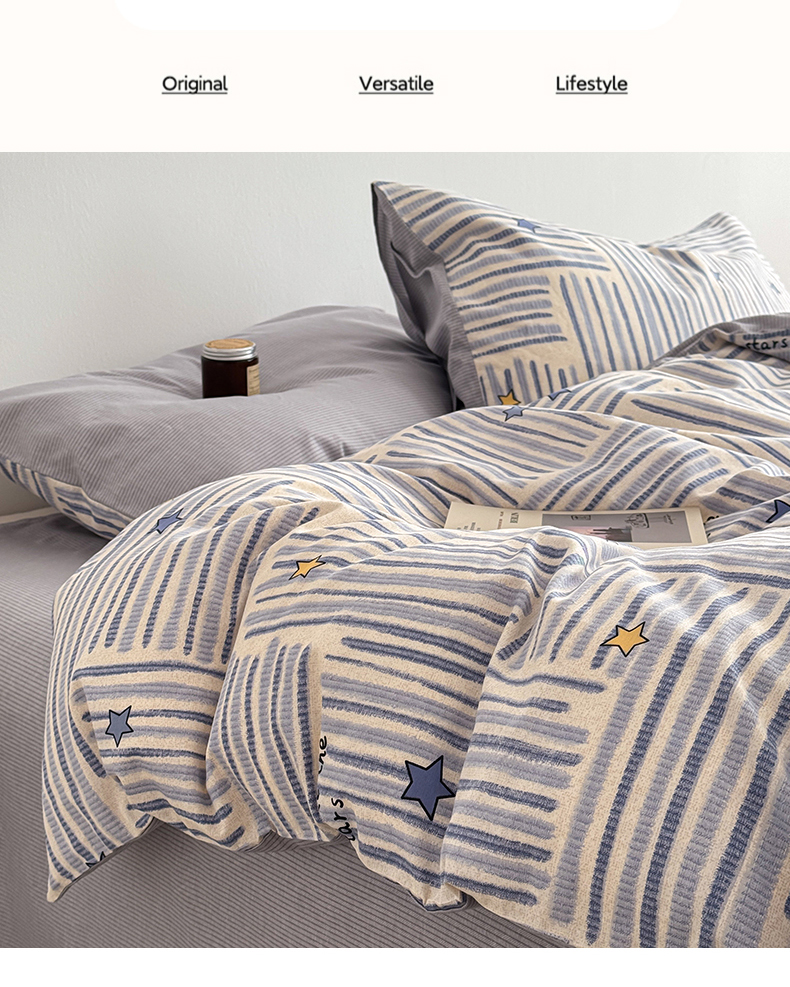 当前位置: 91家纺网 > 商品网购 > 床品套件 > 四件套 > 全棉普通四件套 > 简宜家居(朝初家纺) 2026新款12868全棉简约纯棉四件套 星落灰条