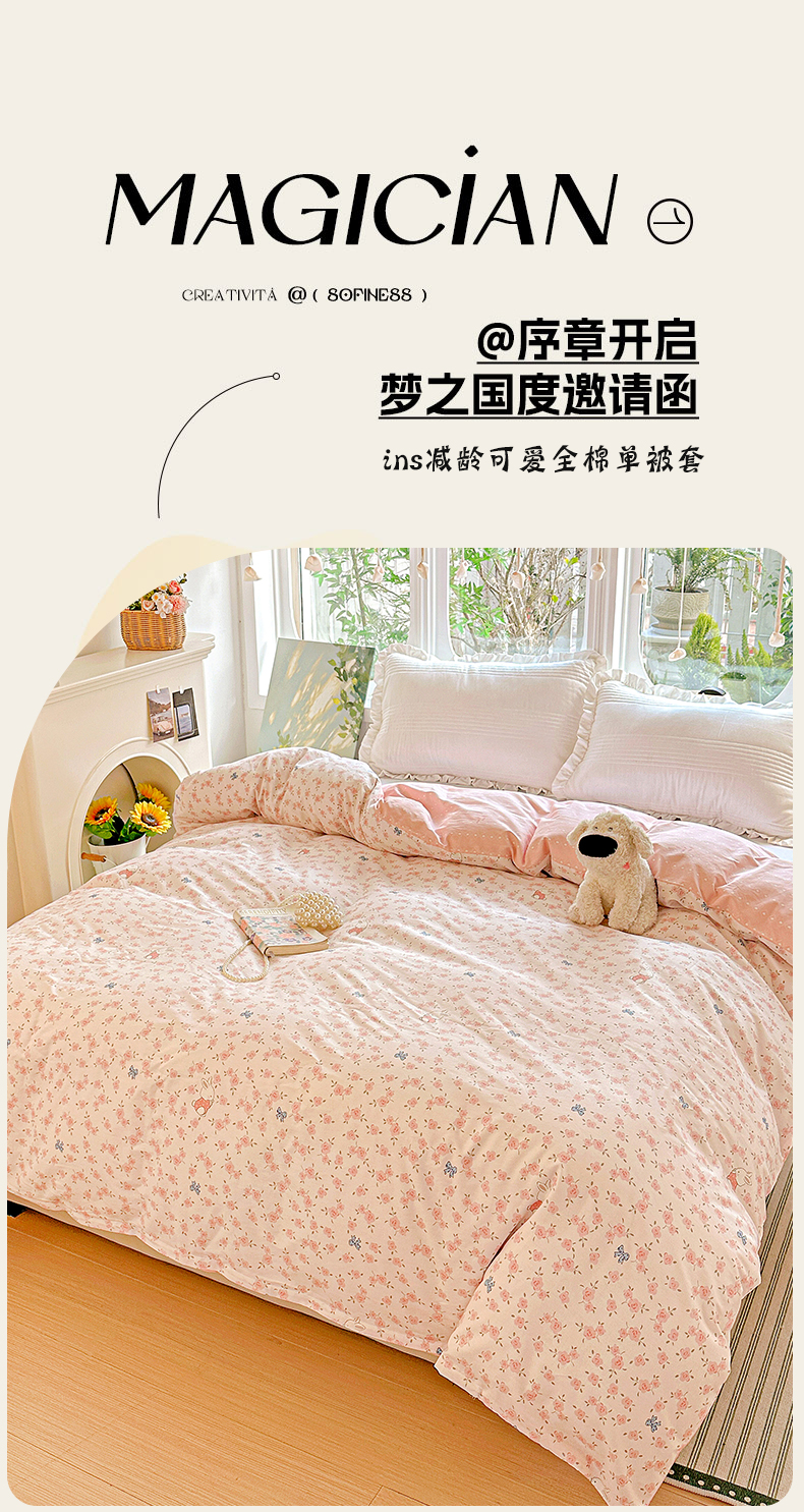 (总)2024新款ins风全棉印花单品被套,爱心小熊,安心宝贝,盎然春色,白桃公主,北极星,波波熊,草莓小恐龙,宠物派对,出水芙蓉,冬日嘉年华,豆蔻年华,多米熊咖,法风小香,国宝联盟,嗨皮熊,海底派对,海底世界,花都丽影,花香馥郁,花语嫣然,皇家学院 灰,几何旋律,橘色心情,可比乐园,蓝色心情,玛格丽,漫步时光,玫瑰佳人,萌萌兔,梦人花香,喵喵派对,莫兰迪,皮皮狗,浅浅花漾粉,浅浅花漾蓝,思维空间,心动熊仔,星光条纹,许愿精灵咖,郁金香兔兔,遇见心情,紫霞,安逸胖哒,斑点小狗,碧城春泥,芳华,菲颂,橘子狗,罗利,米洛,偏爱,清风絮语,小黑猫,摇曳花开,游蝶戏梦,春的色彩
