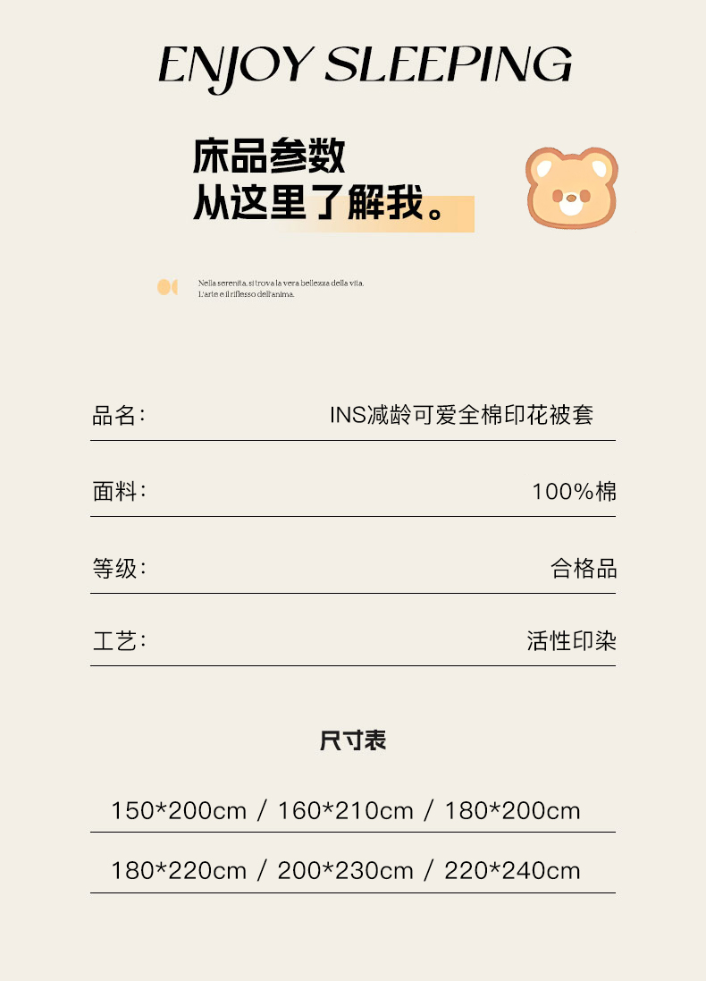 (总)恩泽家纺 2026新款13372ins全棉印花四件套单品系列-单被套,爱的陪伴,百花缘,晨曦海棠,彼岸花开,贝拉花影,半月时光,半夏,翠影,淡香春意,繁花夕露,花开宿语,花影间,眷恋,空谷幽兰,酷仔熊,乐享生活,乐园,菱形世界,满香庭,沫恋,沐浴暖阳,若薇,叶玲珑,樱雪,优朵蔓,玉兰芬芳,早安,芷妍