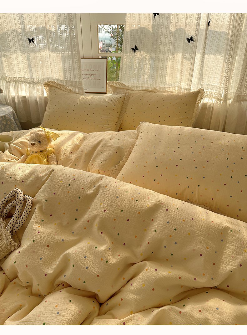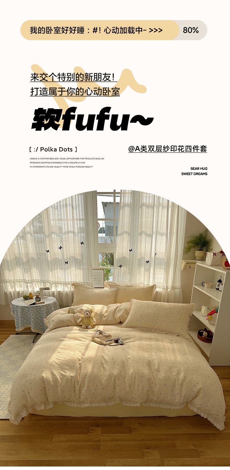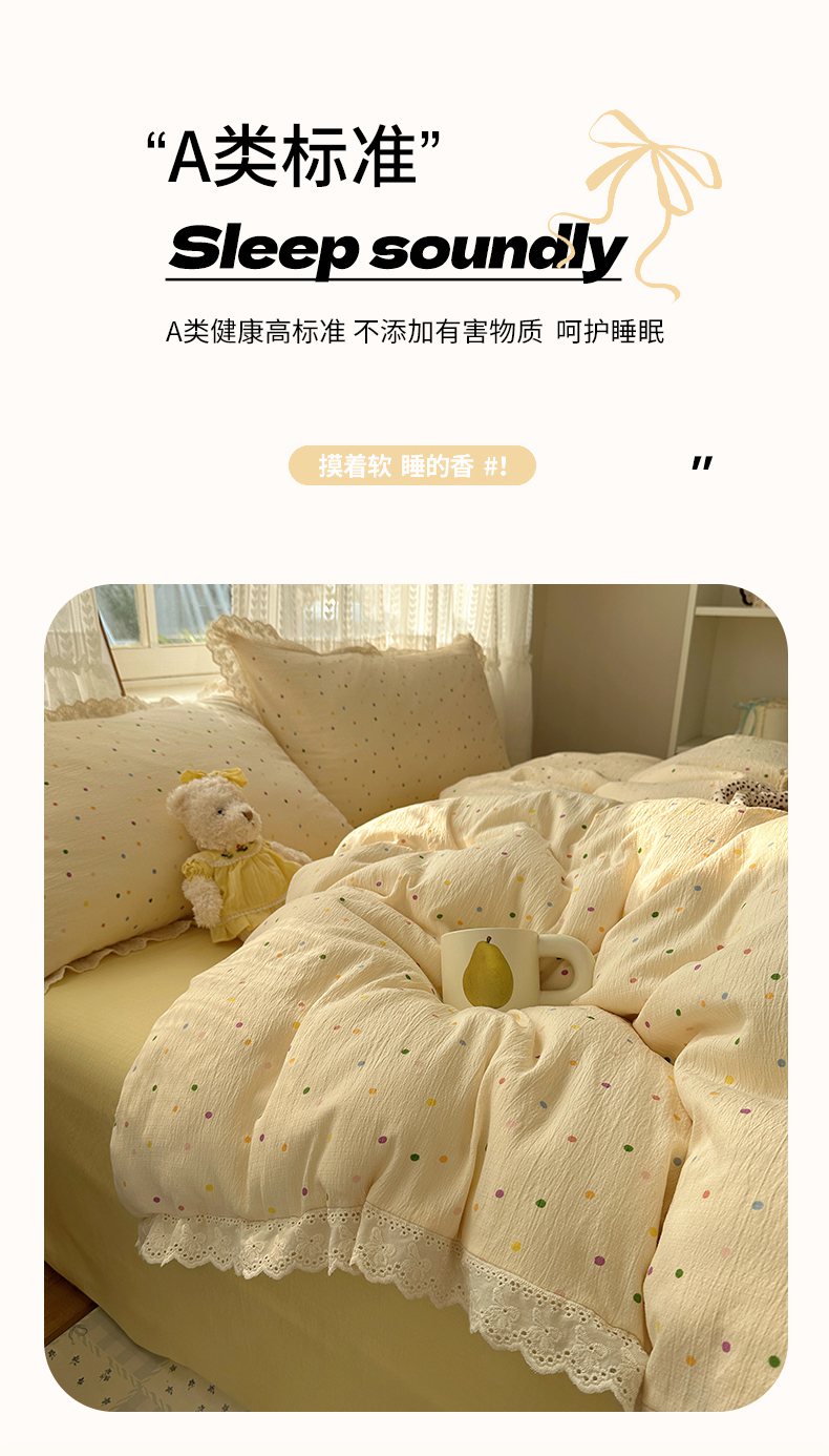 (总)韩巢家纺 2026新款少女心蕾丝花边款四件套,粉小格【蕾丝花边款】,草莓小波点【蕾丝花边款】,草莓小卷猫【蕾丝花边款】,粉小花【蕾丝花边款】,好多芝麻球【蕾丝花边款】,蓝灰波点【蕾丝花边款】,蓝小格【蕾丝花边款】,梨云杳杳【蕾丝花边款】,米黄波点【蕾丝花边款】,小花集【蕾丝花边款】,心动预演【蕾丝花边款】,芋泥紫波点【蕾丝花边款】