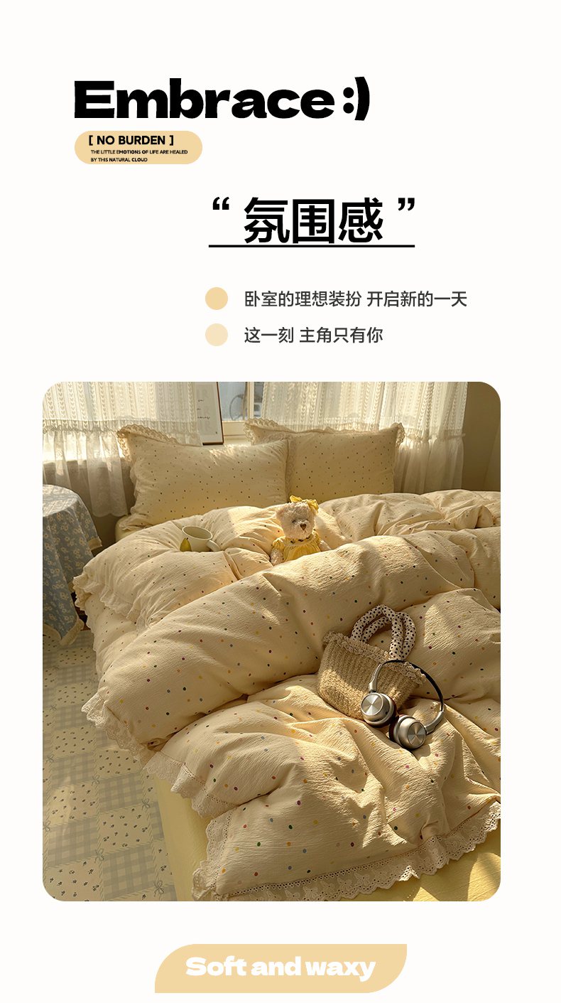 (总)韩巢家纺 2026新款黑色花边款四件套,红深粉波点【黑皱皱花边款】,波点世界【黑皱皱花边款】,黑丁香紫波点【黑皱皱花边款】,咖波点【黑皱皱花边款】,蓝灰波点【黑皱皱花边款】,米黄波点【黑皱皱花边款】