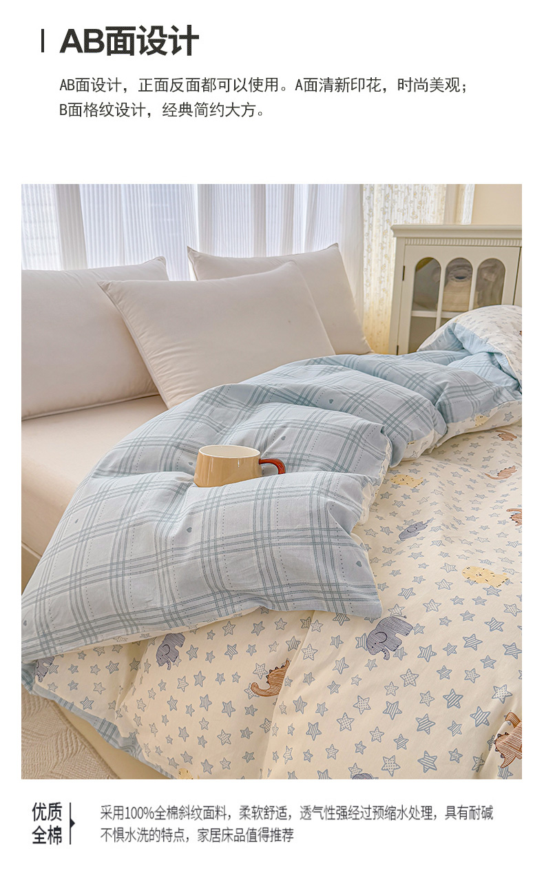 安逸家纺 2026新款全棉纯棉印花12868系列-被套单件单被套 蓝星动物园