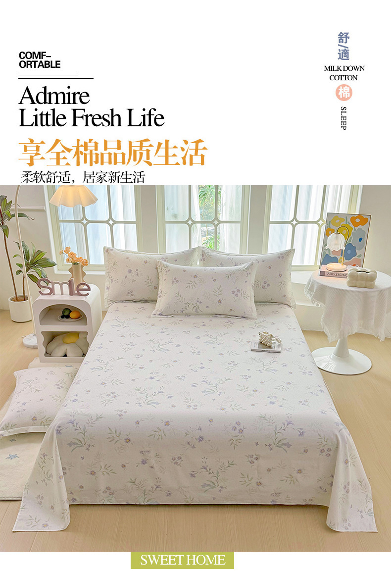 (总)安逸家纺 2026新款12868 全棉纯棉床单四件套学生宿舍纯棉床单款三件套,美伊娜多,豹纹KT粉,草莓派,繁星,风华正茂,格拉花园,桂馥兰香,花田妙语,花园狮子狗,凯蒂宝贝,蓝沫,蓝色星星人,蓝星动物园,蕾拉果园,罗德里,洛克庄园,洛琳粉,梦幻格,米兰印象,青绿银杏,苏糖咖,甜心花朵,微风徐徐,心动旋律,星辰大海,星星独角兽,徐徐花开,雪哈汪,幽兰花梦,釉色浮光