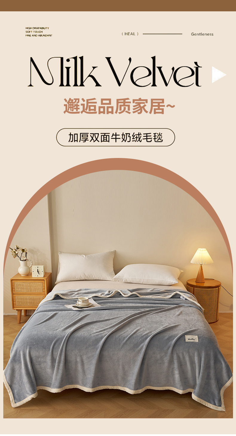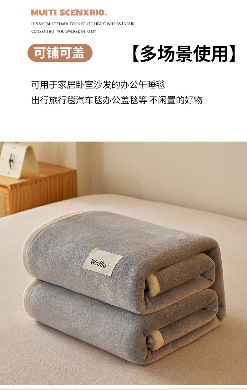 (总)蓝冰家纺 2026新款加厚牛奶绒多功能毛毯,烟灰色,蓝色,蜜桃粉色