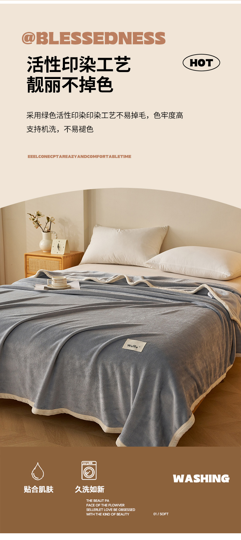 商品名称:蓝冰家纺 2026新款加厚牛奶绒多功能毛毯 烟灰色