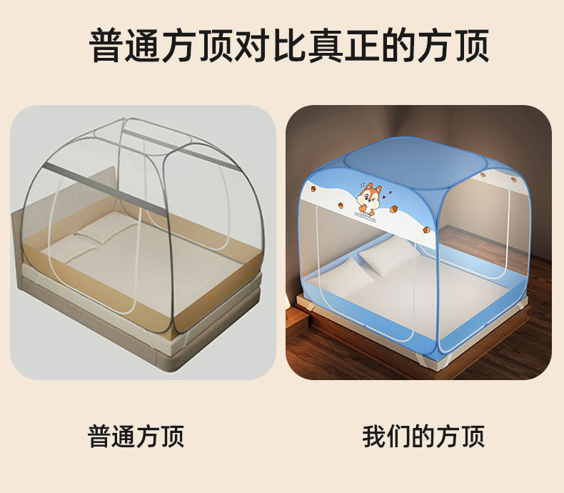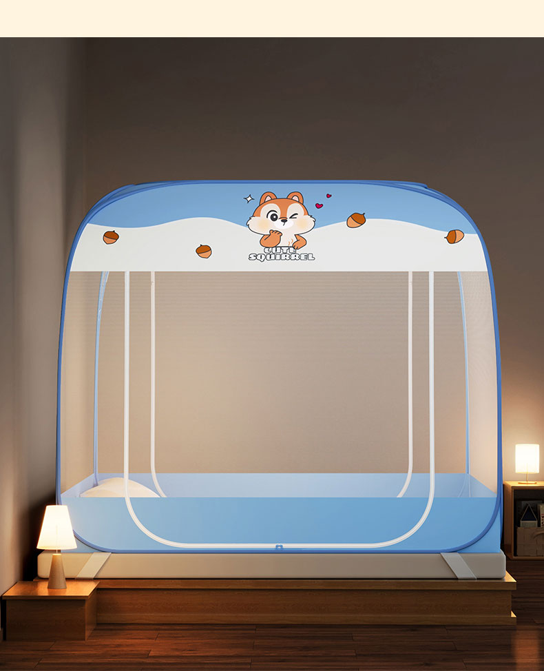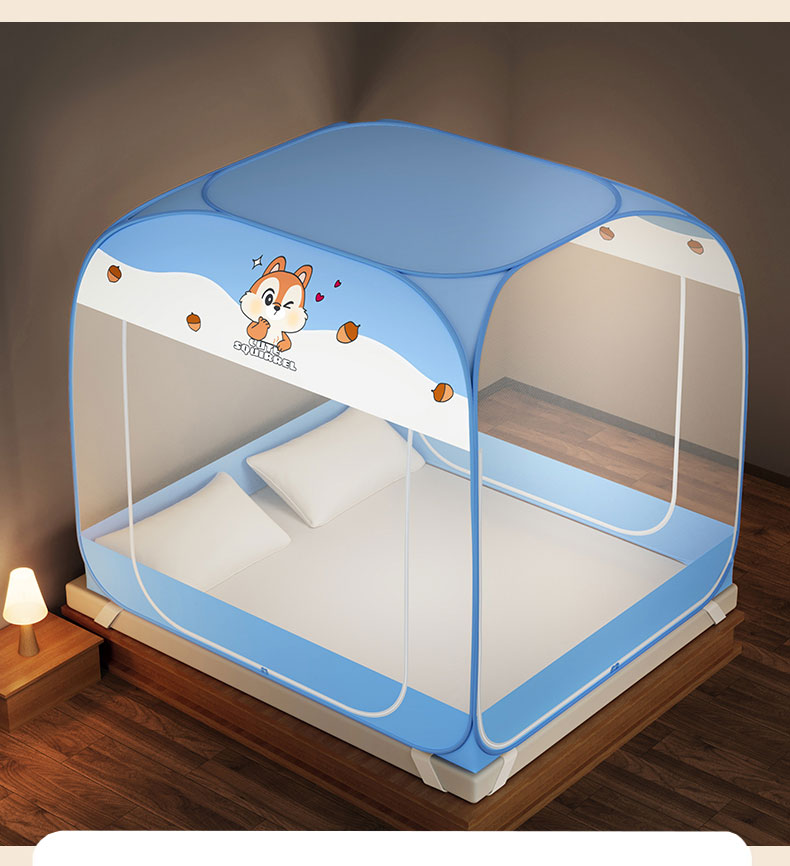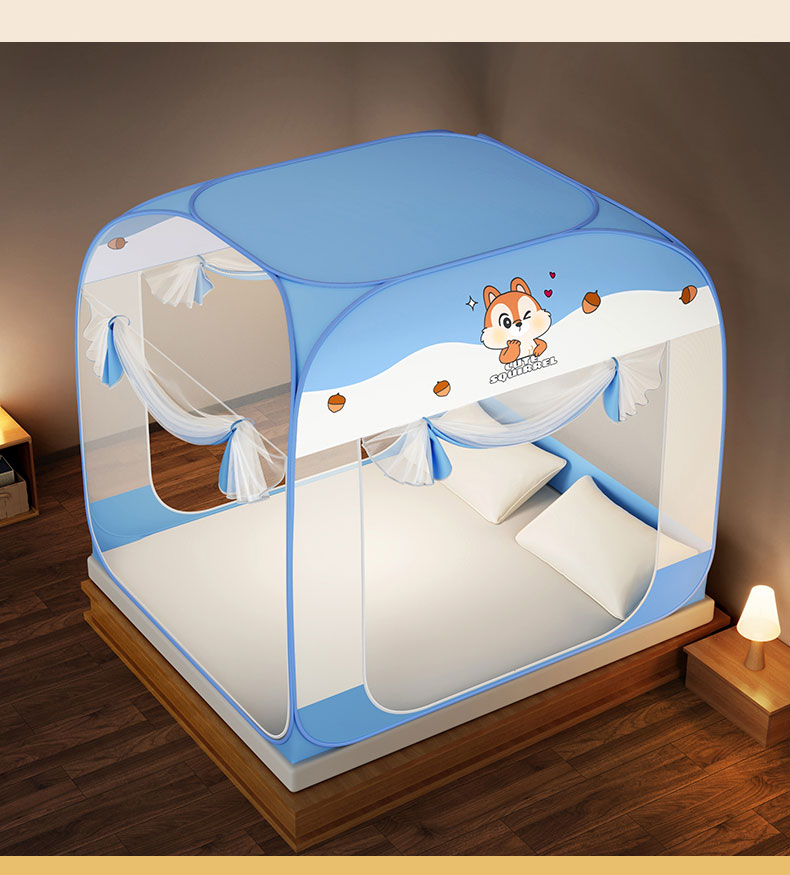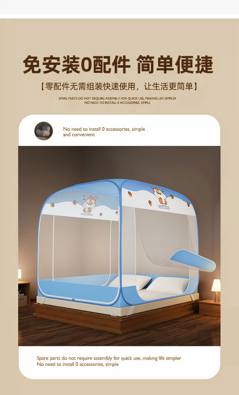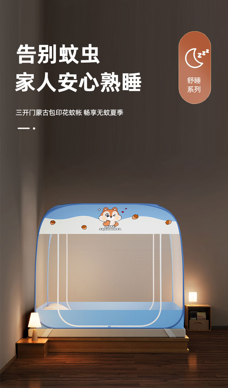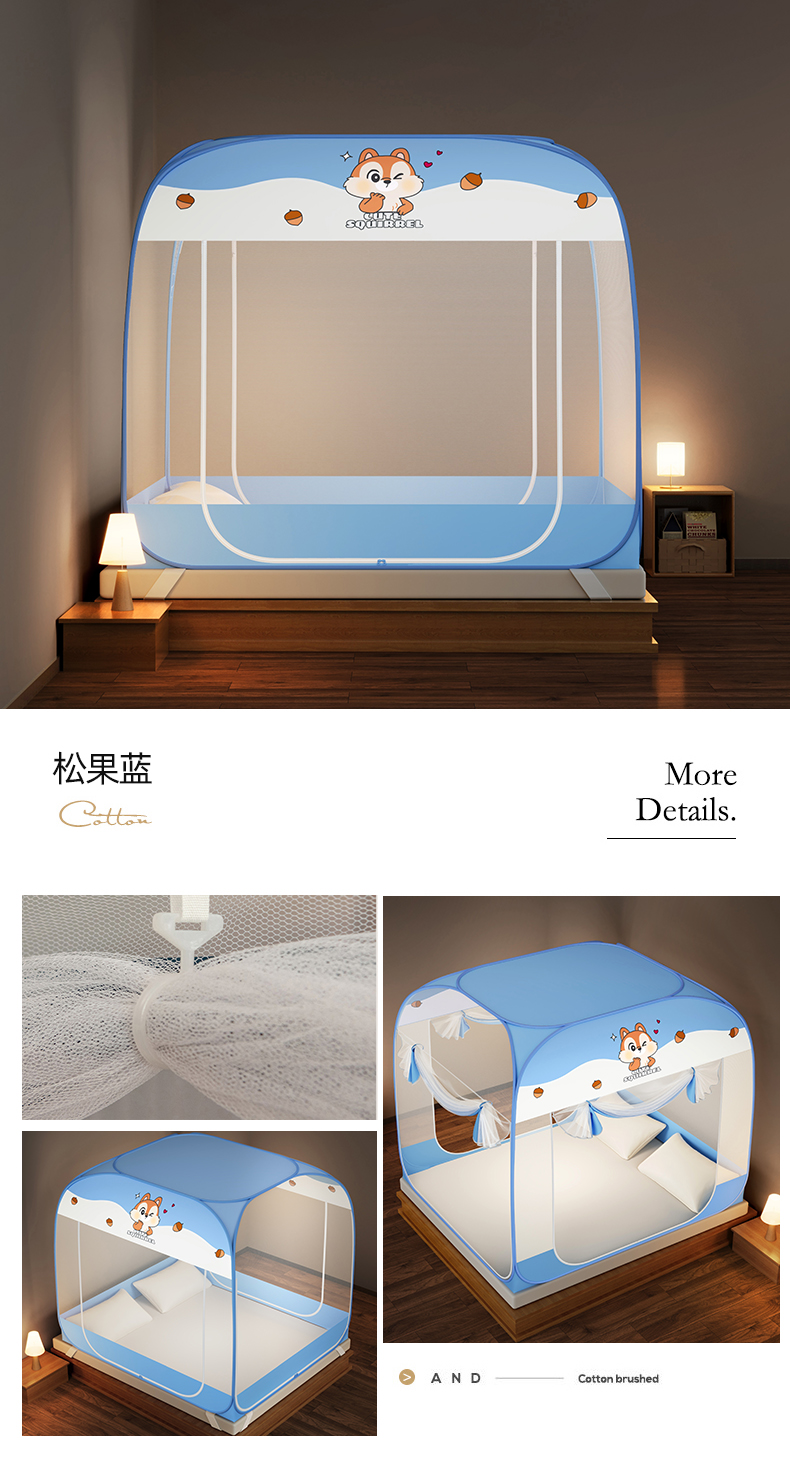佳梦家纺 2026新款三开门防尘顶免安装蚊帐 松果蓝