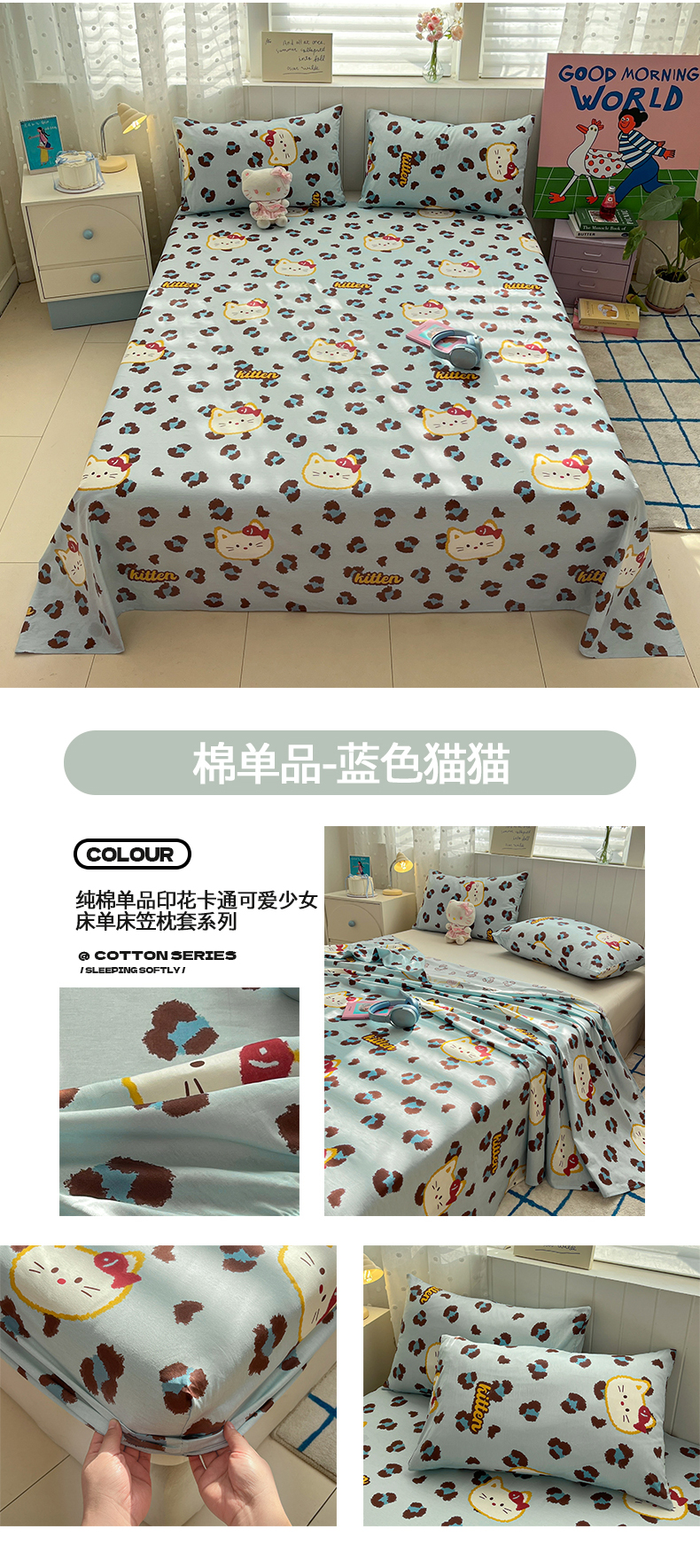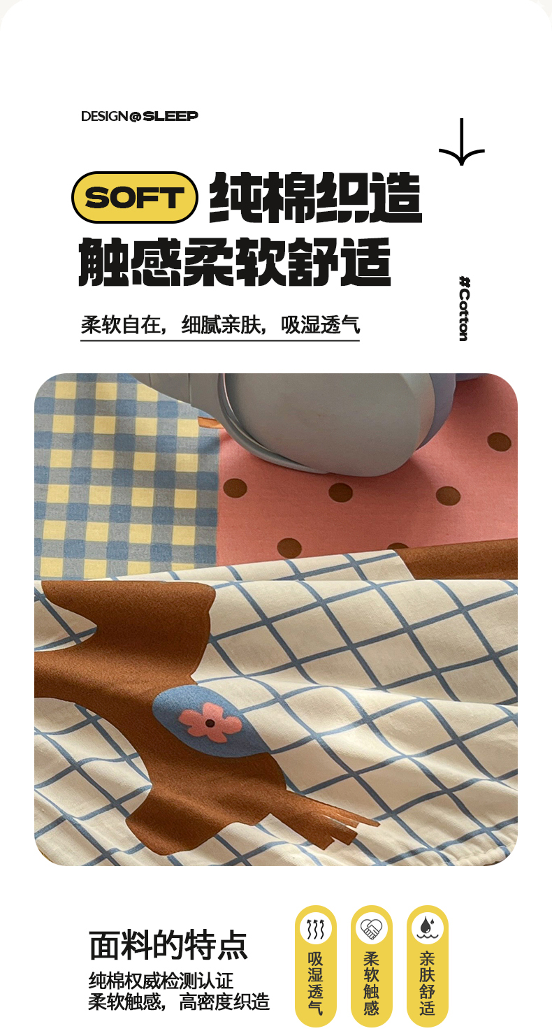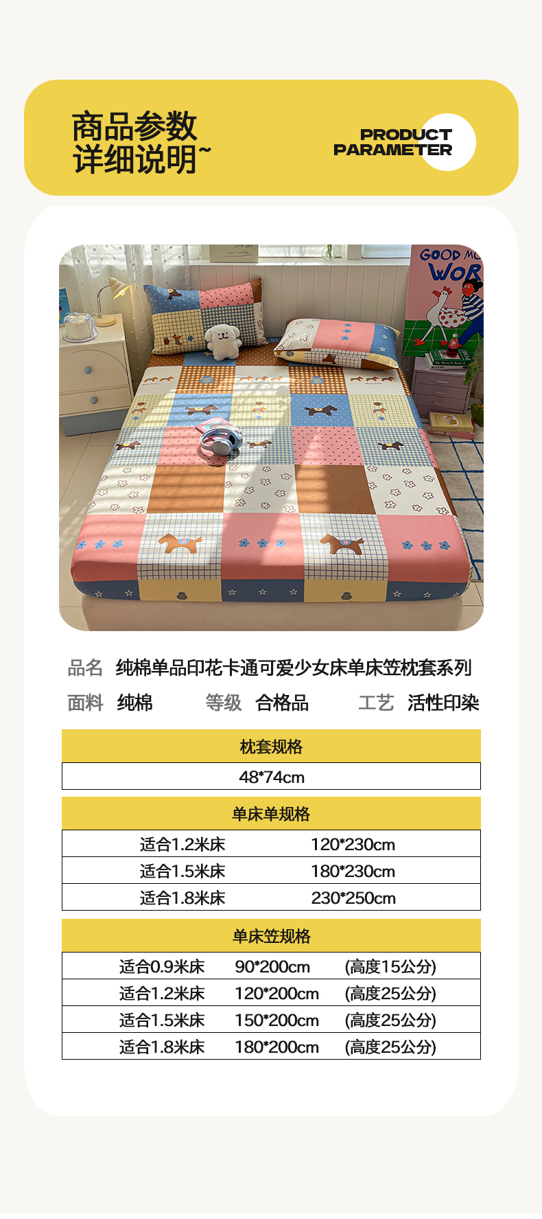 • 91家纺网 家纺一手货源 找家纺 桃子家居 2026新款纯棉全棉单品印花卡通可爱少女床单床笠枕套系列 棉单品-彩格小马