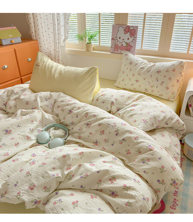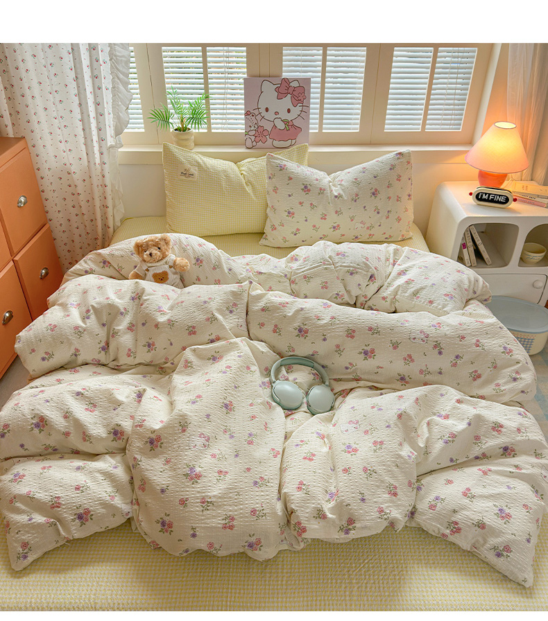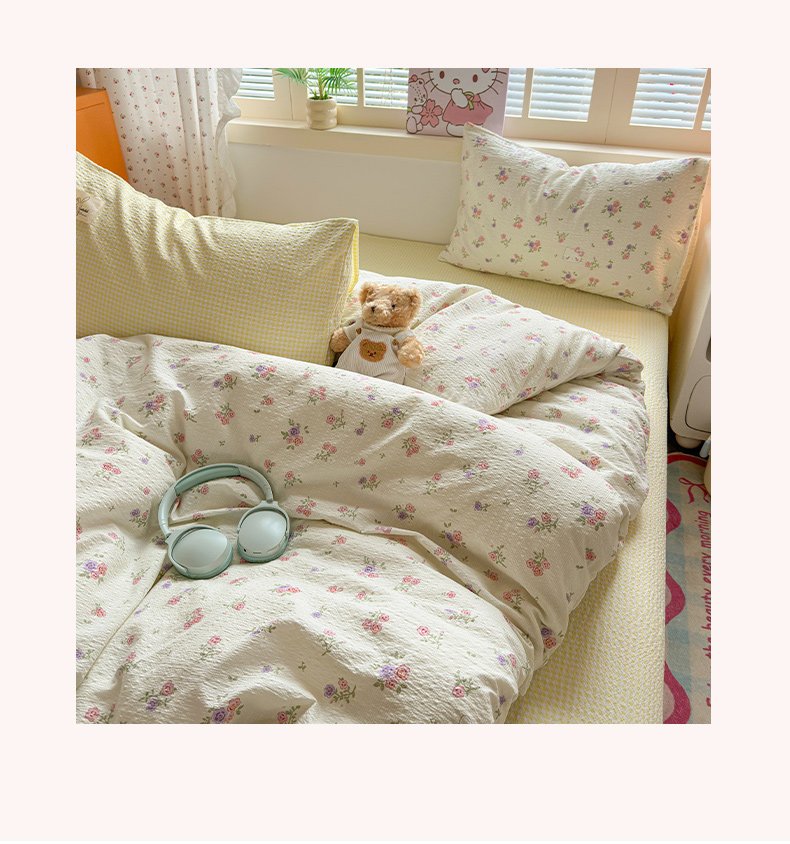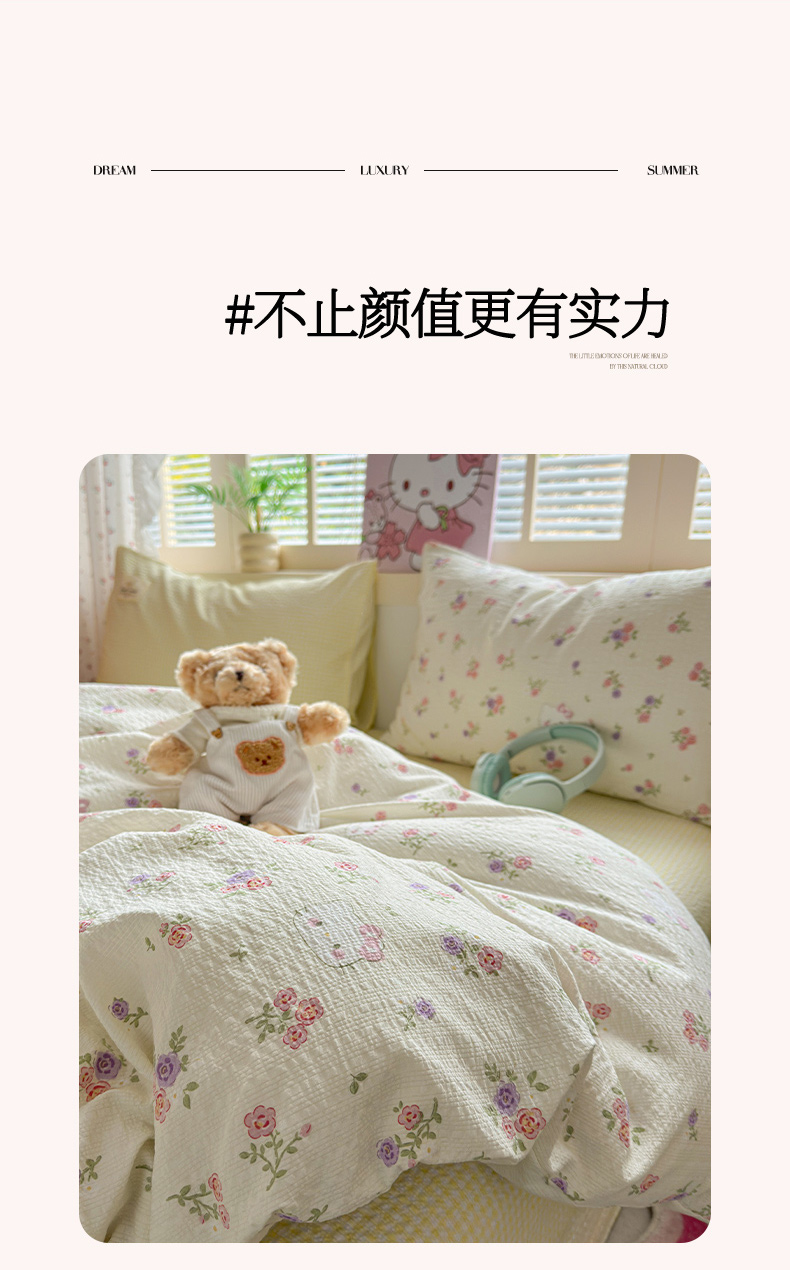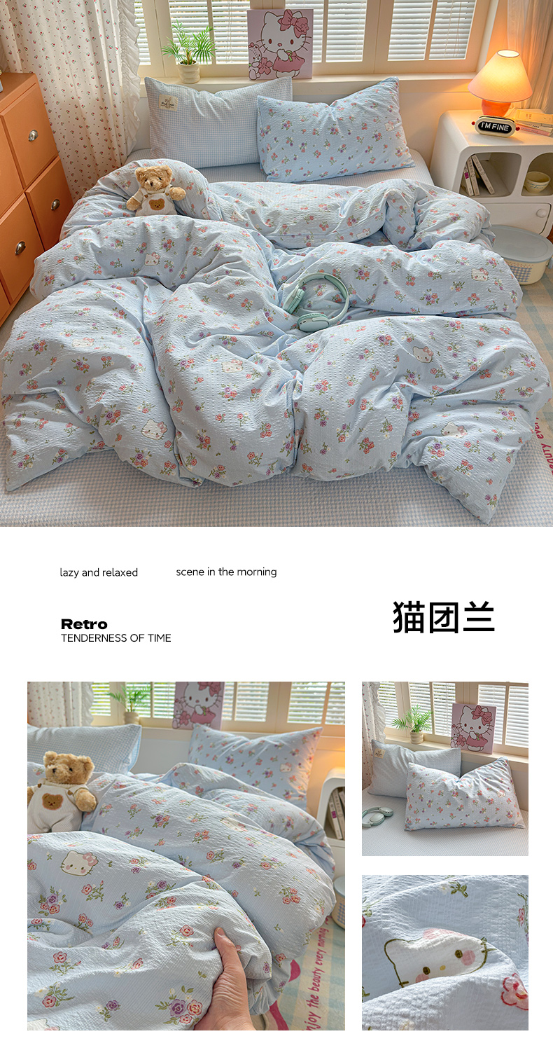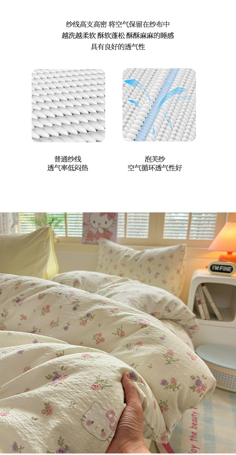 当前位置: 91家纺网 > 商品网购 > 床品套件 > 四件套 > 其它四件套 > 奈颜 2026新款贴标款A类超柔泡芙纱印花四件套 猫团奶黄