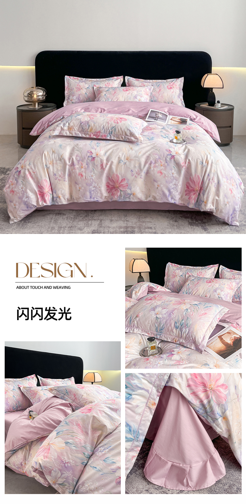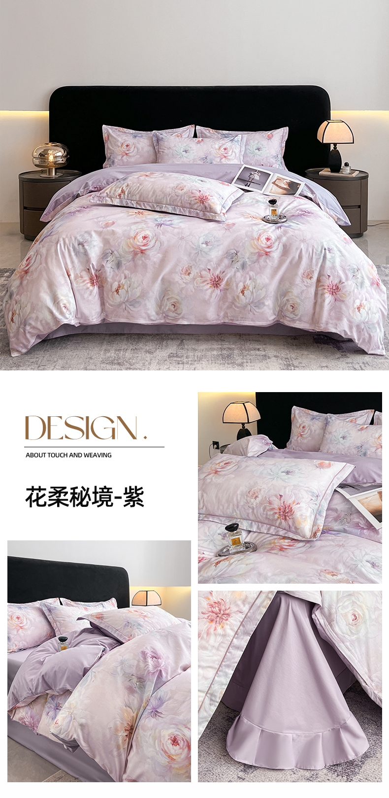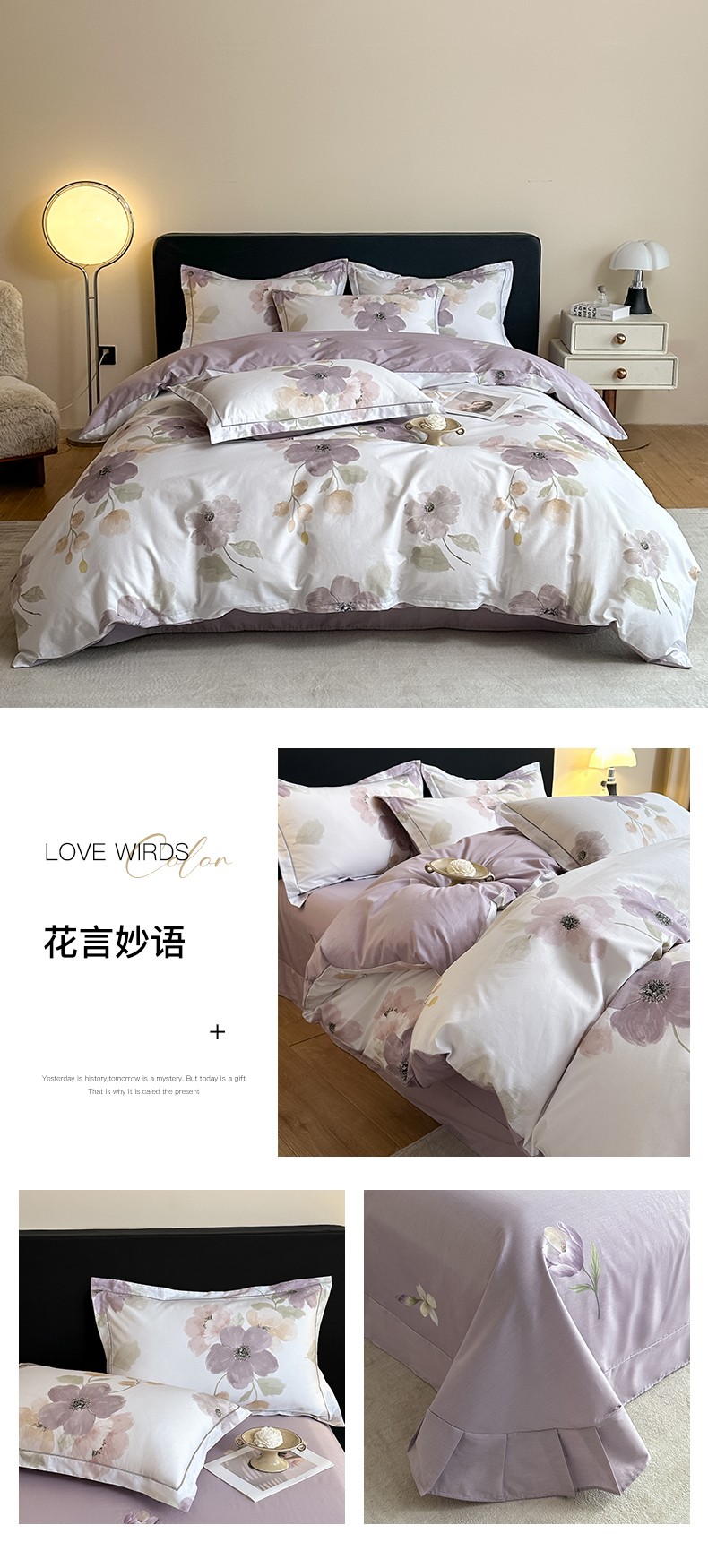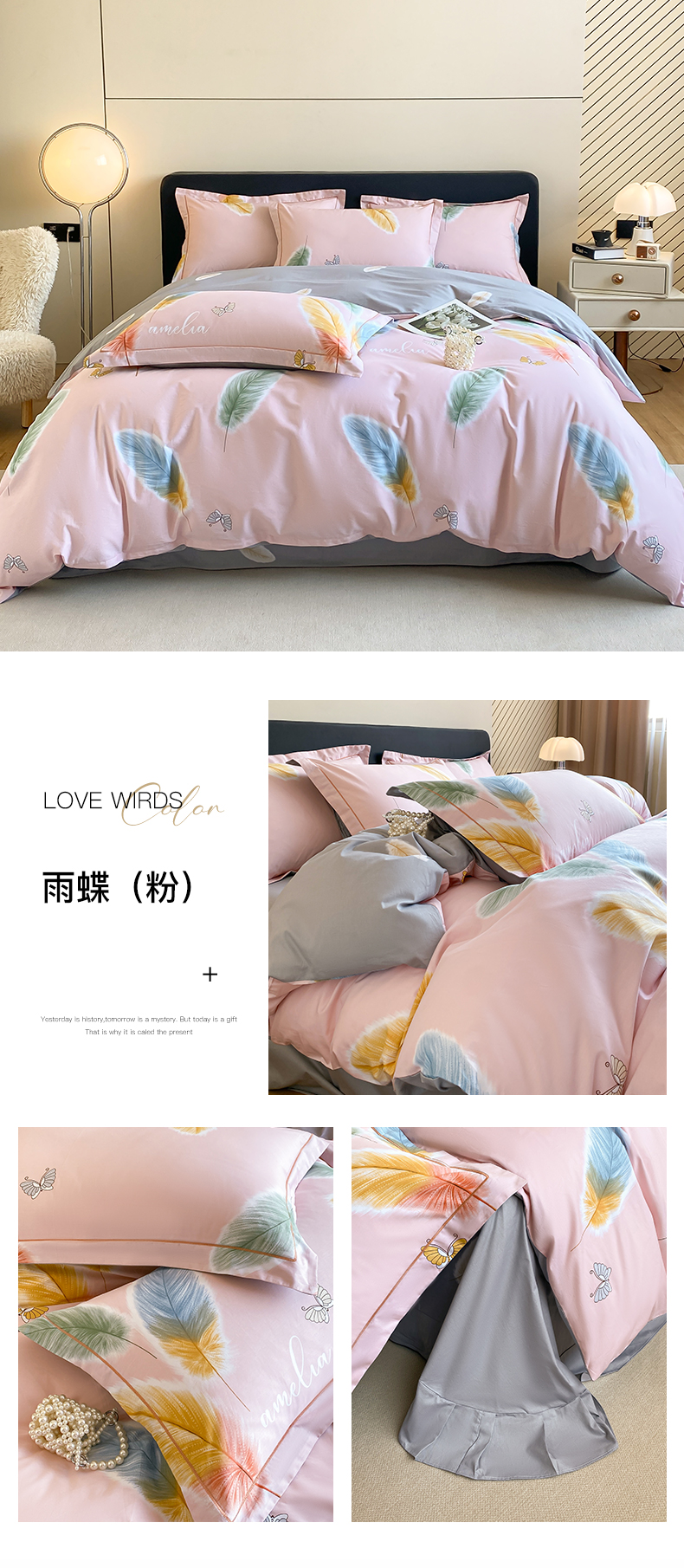当前位置: 91家纺网 > 商品网购 > 床品套件 > 四件套 > 全棉普通四件套 > 格里芬家纺 2026新款全棉纯棉40S精梳棉13376印花四件套 南枝-粉
