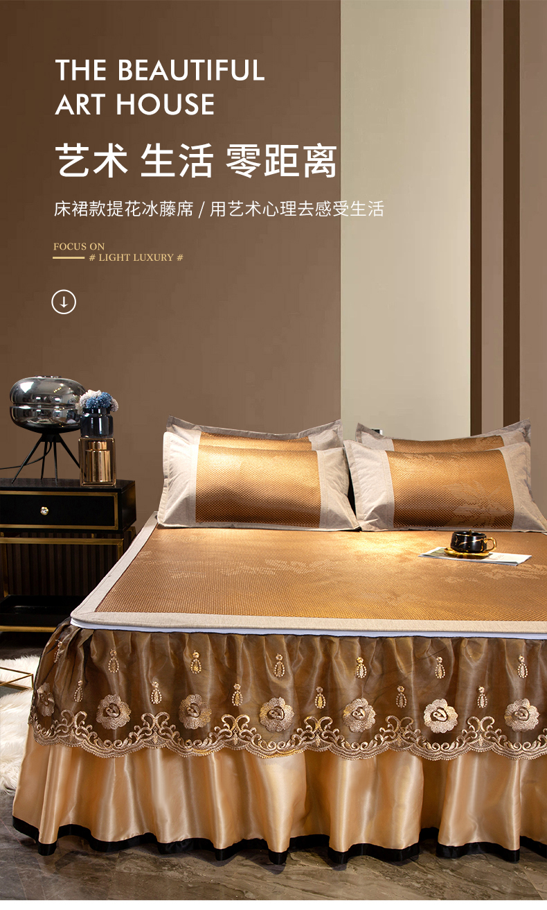 能好家纺 2026春夏新款提花冰藤床裙款凉席席子 枫叶 咖