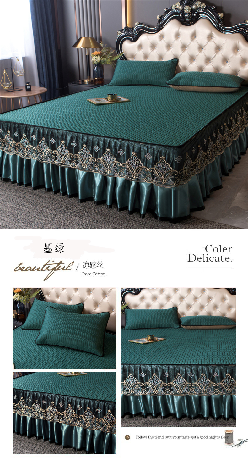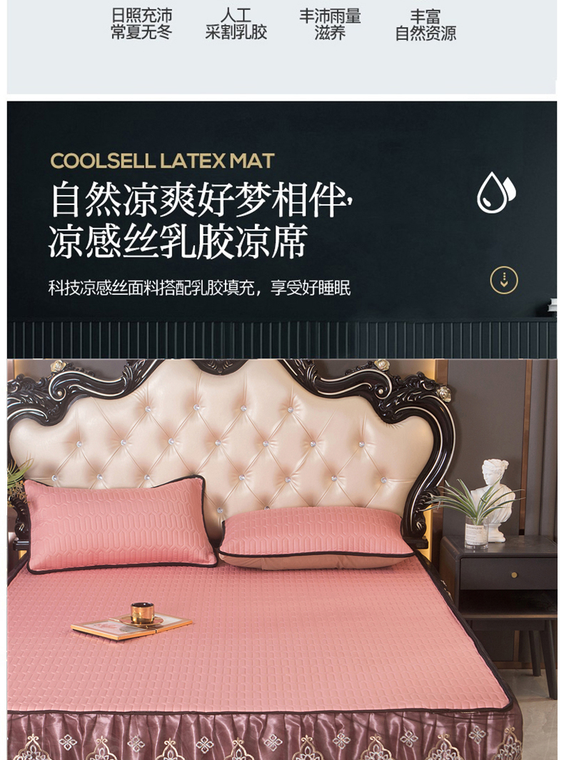 商品名称:能好家纺 2026春夏新款纯色+印花凉感丝乳胶凉席床裙款三件套 幽梦