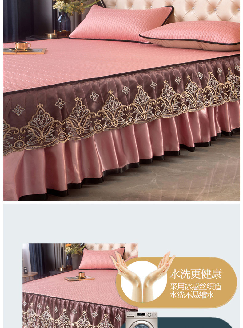 (总)能好家纺 2026春夏新款纯色+印花凉感丝乳胶凉席床裙款三件套,薄荷绿,豆沙,灰色,酒红,孔雀蓝,墨绿,雪青,棕色,古韵,小熊,雅韵,幽梦