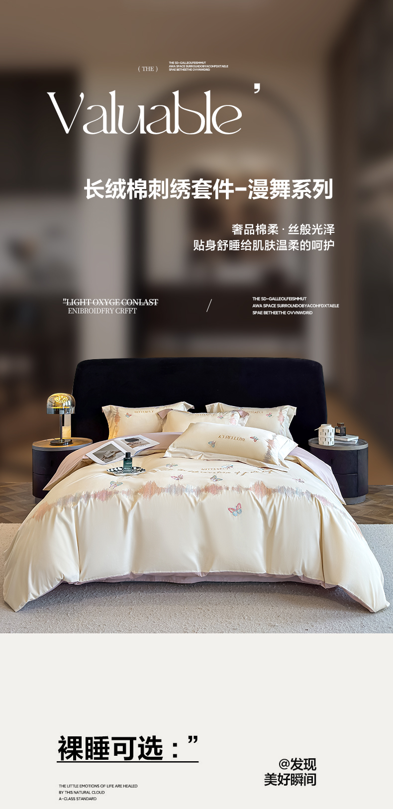 当前位置: 91家纺网 > 商品网购 > 床品套件 > 四件套 > 长绒棉四件套 > (总)欣宜家纺 2026春夏新款纯棉全棉长绒棉刺绣绣花高端礼盒四件套-漫舞