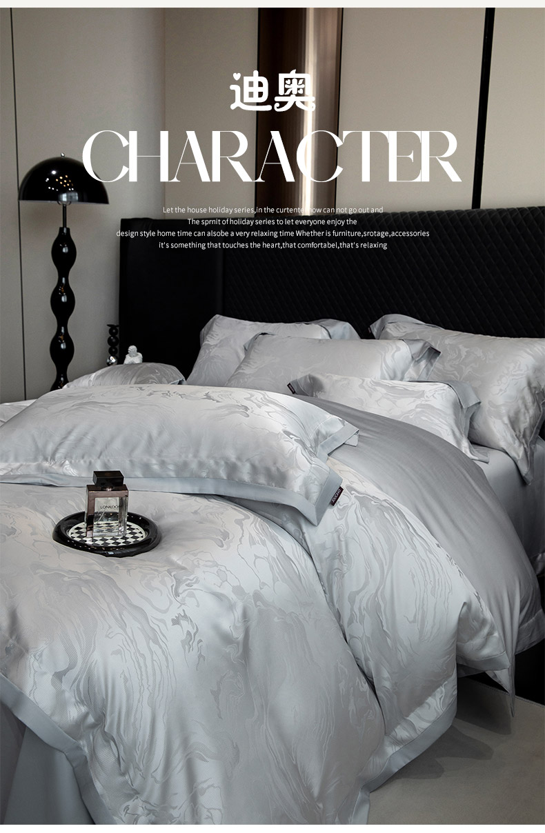 当前位置: 91家纺网 > 商品网购 > 床品套件 > 四件套 > 长绒棉四件套 > 2026新款轻奢风高端A类贡缎长绒棉纯棉提花被套床单床笠高级感床上用品四件套-姝忆 姝忆-蒂奥银