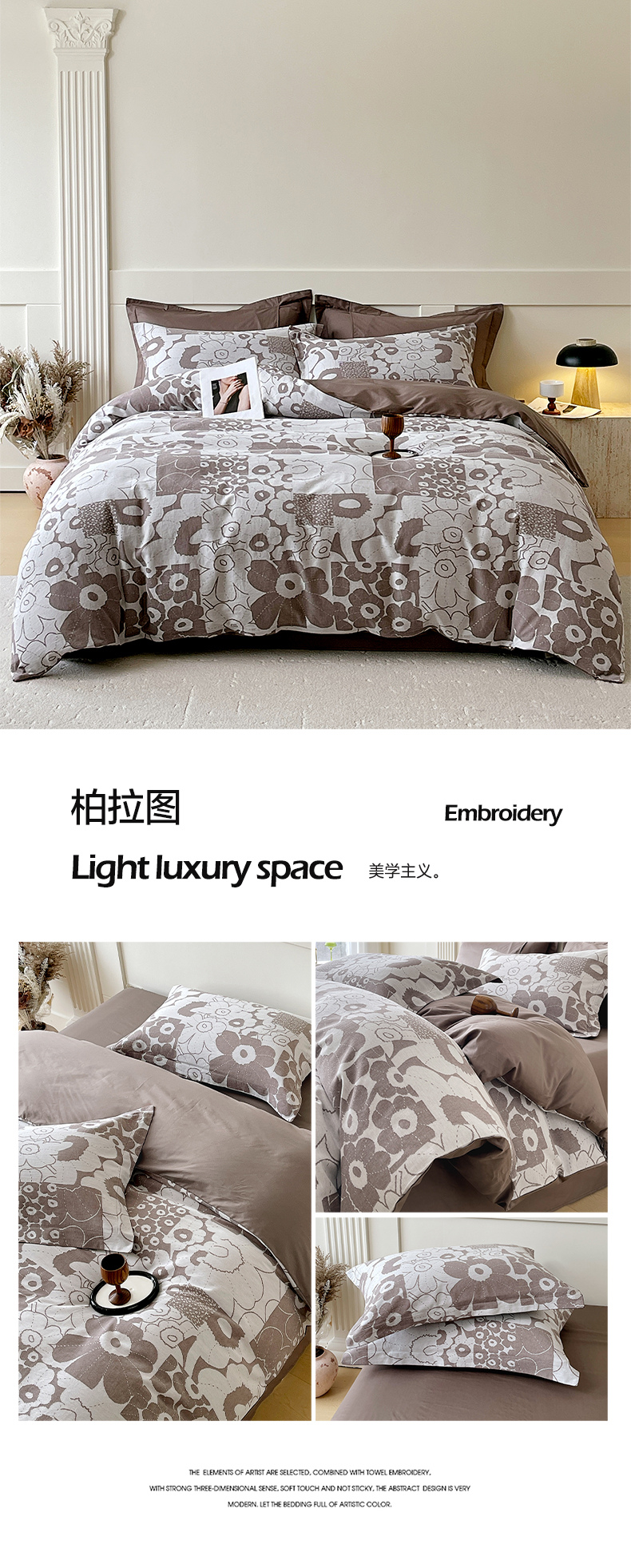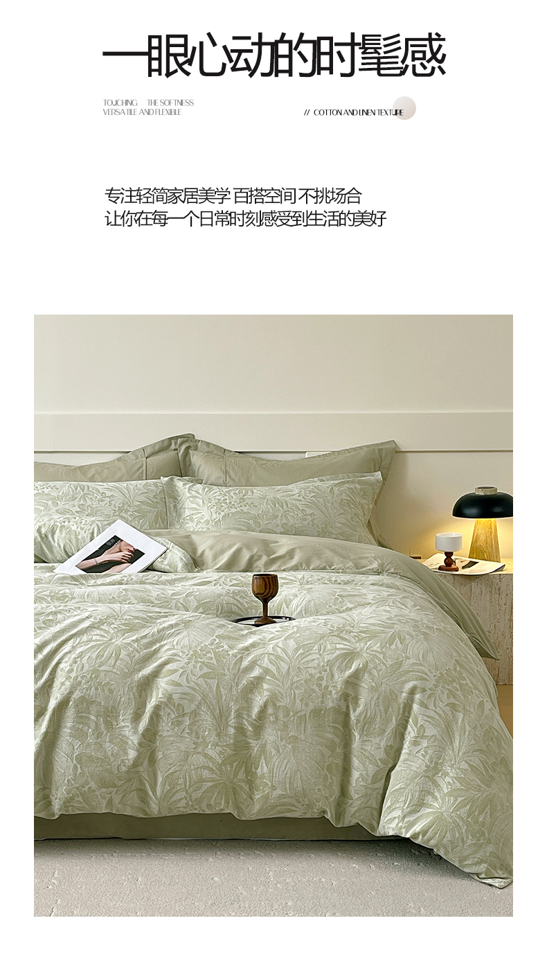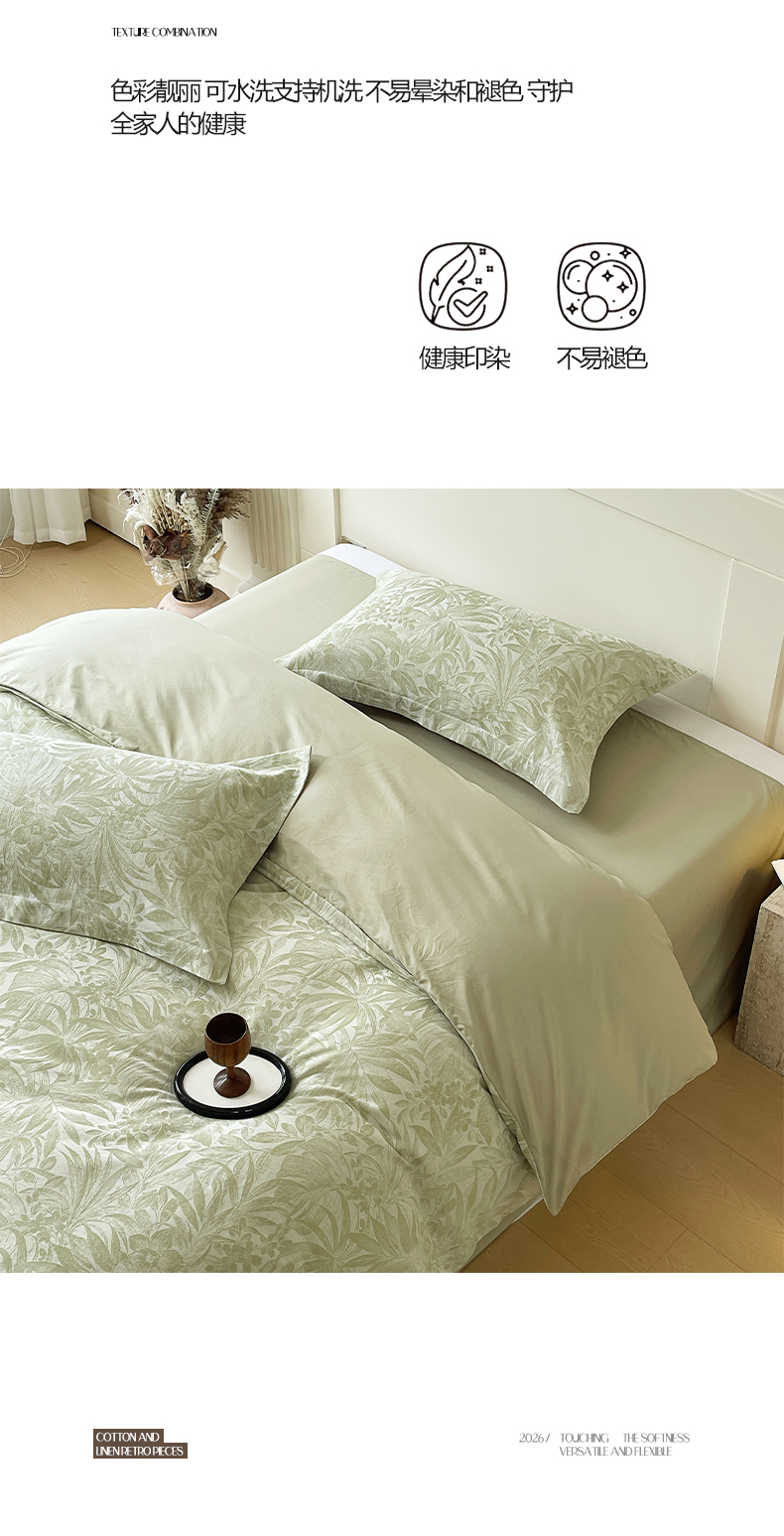 (总)帅露家纺 2025新款A类棉麻活性印染四件套系列,花间意境-红,花间意境-灰,花香满园-红,素锦-咖,香叶时代,映霜-灰,映霜-绿