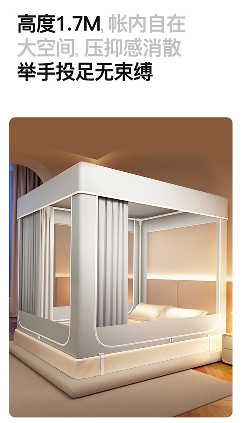 当前位置: 91家纺网 > 商品网购 > 床上用品 > 蚊帐 > 坐床式蚊帐 > 佳梦家纺 2026春夏新款护栏级防摔坐床蚊帐永夜系列 永夜粉-防尘款三门半底