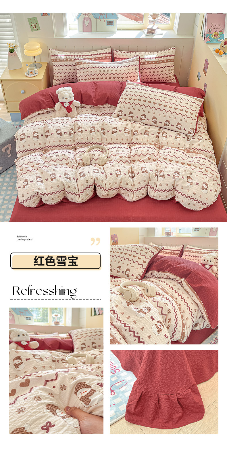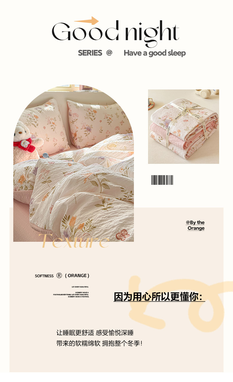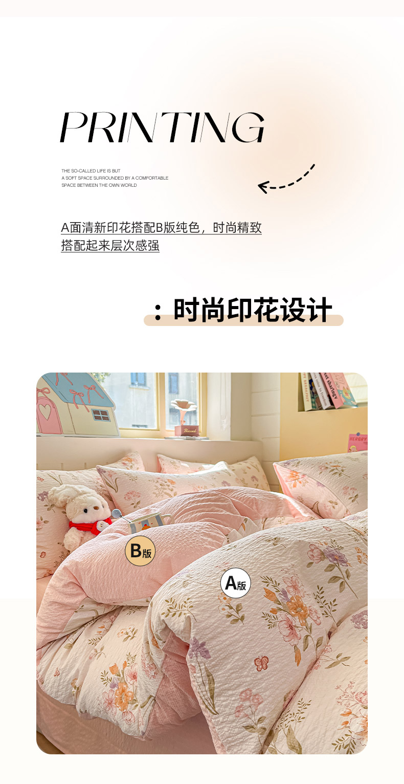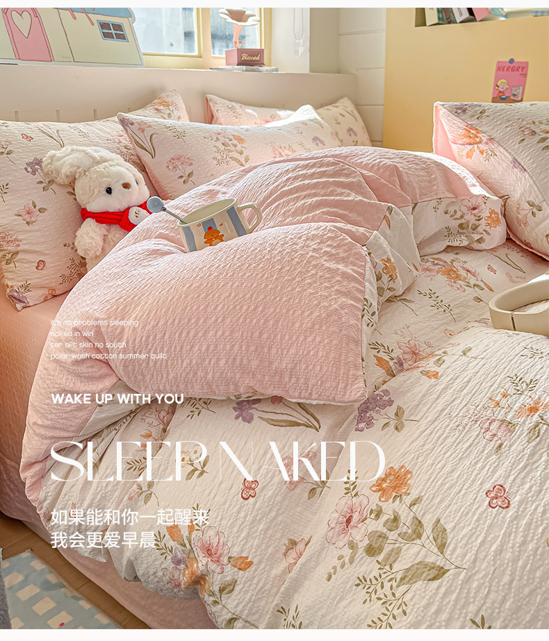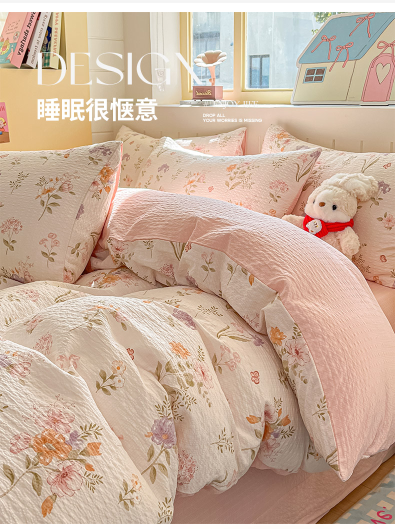 当前位置: 91家纺网 > 商品网购 > 床品套件 > 四件套 > 其它四件套 > 金梦拉家纺 2026新款A类高品质高克重超柔泡芙纱泡泡纱小清新四件套 海棠听风
