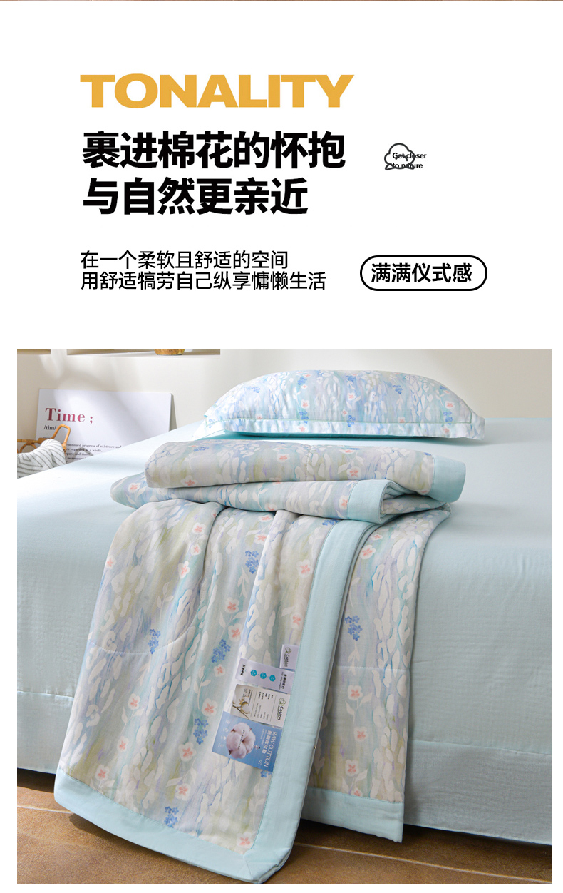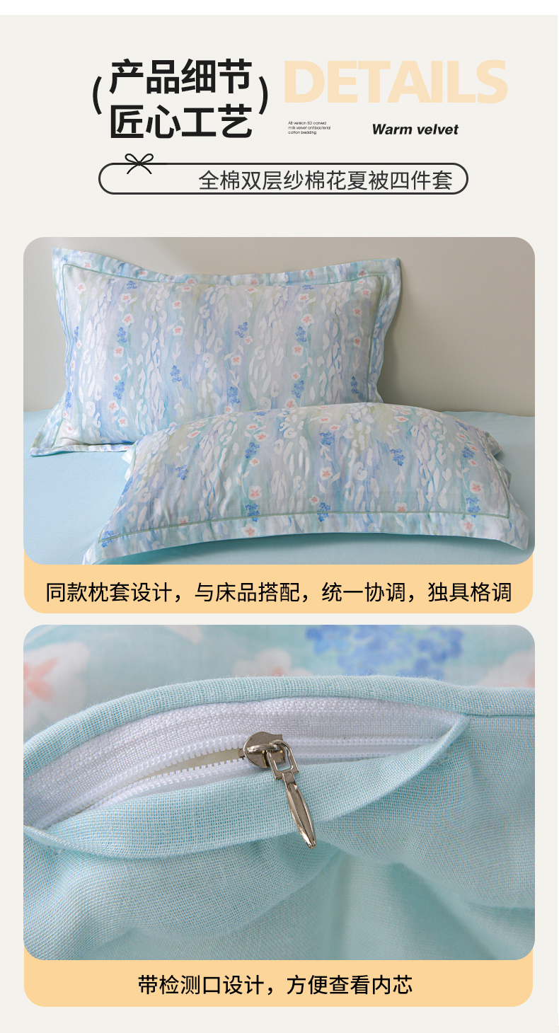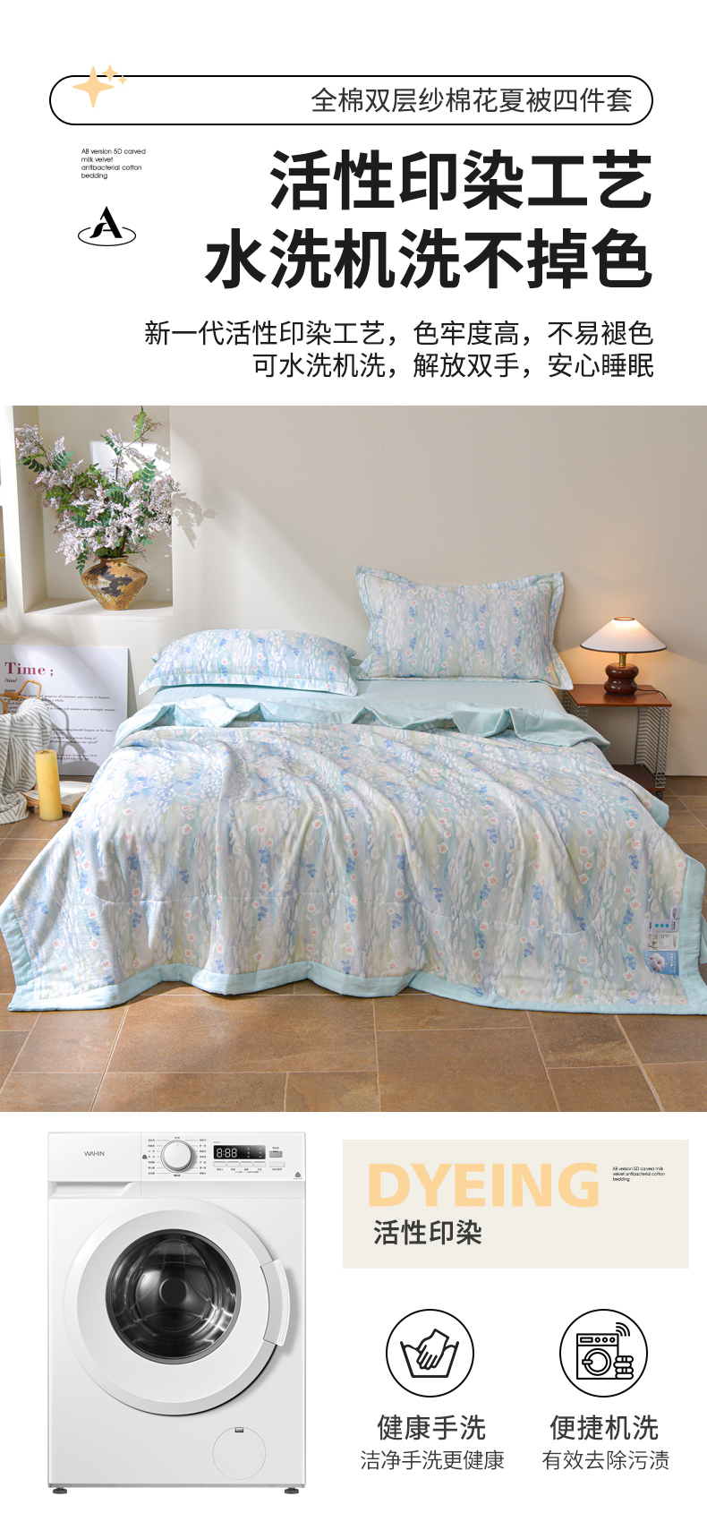 • 91家纺网 家纺一手货源 找家纺 金昱纺 2026新款A类全棉双层纱新疆棉花夏被四件套(带检测报告,包检测,有微信+买家秀) 禾棠映月-兰