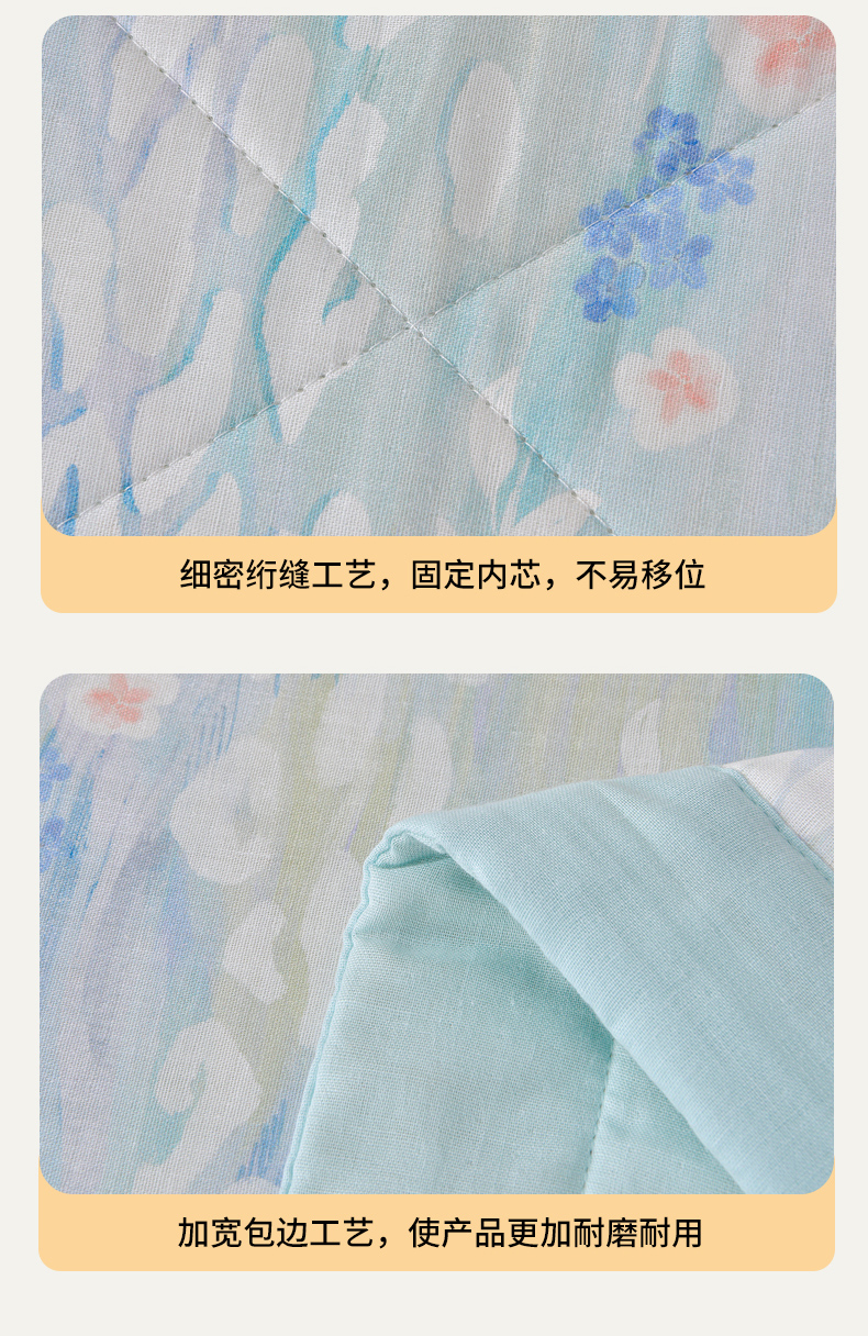 当前位置: 91家纺网 > 商品网购 > 被子 > 夏被 > 金昱纺 2026新款A类全棉双层纱新疆棉花夏被四件套(带检测报告,包检测,有微信+买家秀) 禾棠映月-兰