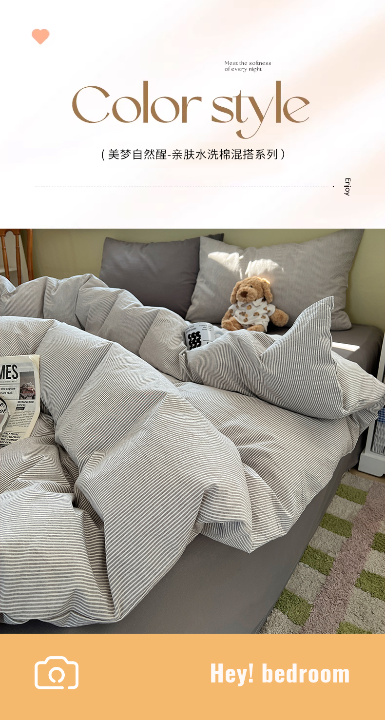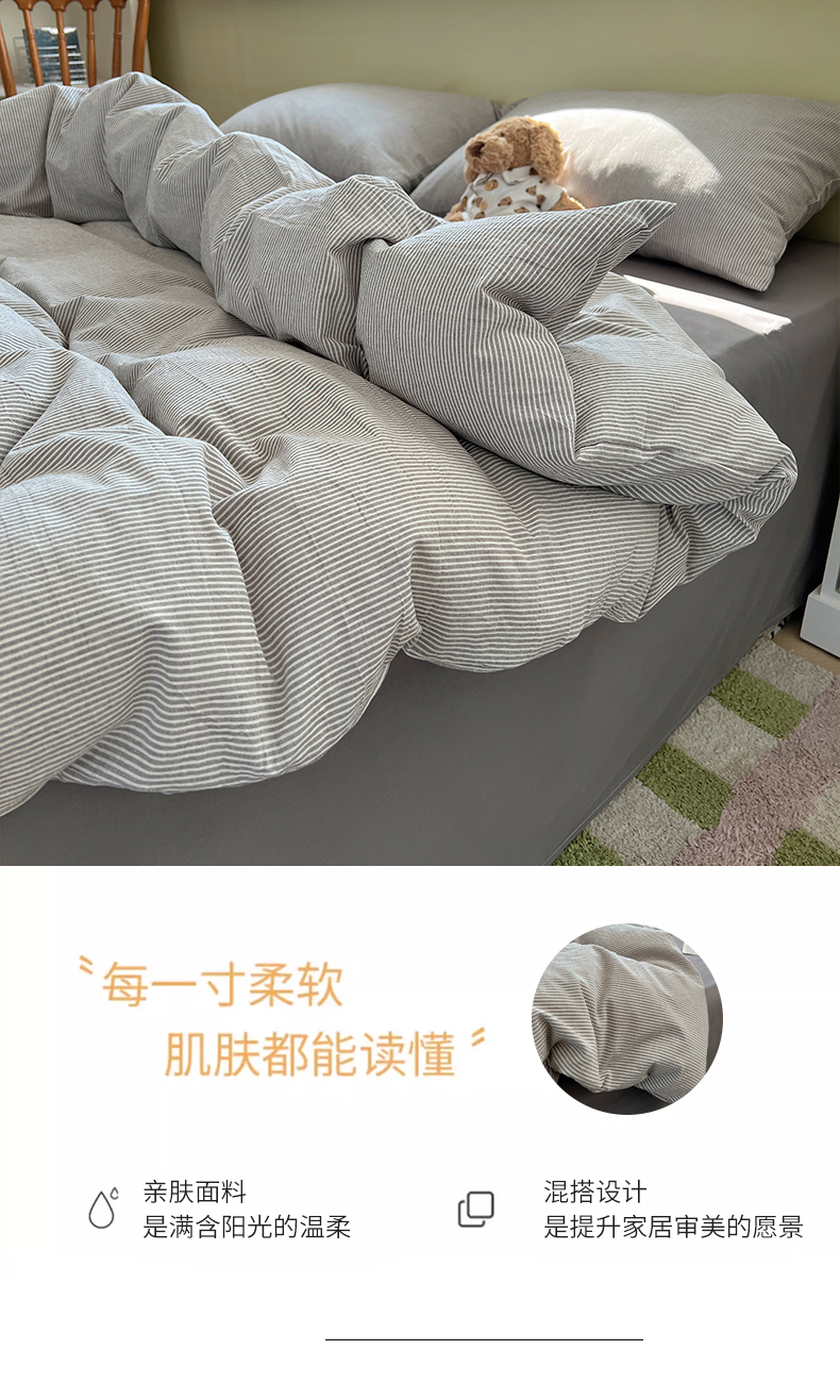 当前位置: 91家纺网 > 商品网购 > 床品套件 > 四件套 > 水洗棉四件套 > 悦织湾家纺 2026新款软糯加厚水洗棉条格无印宜家风混搭三件套四件套学生宿舍床上用品 混搭粉小格