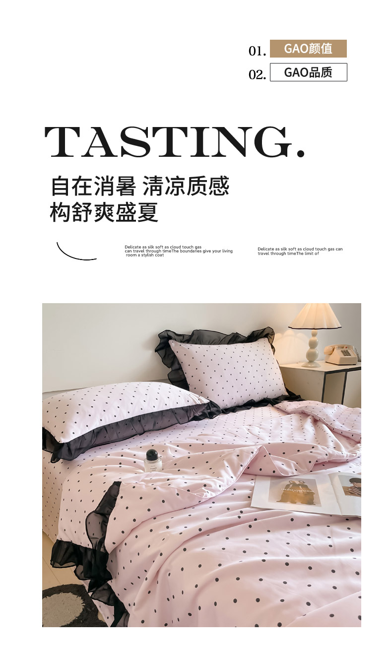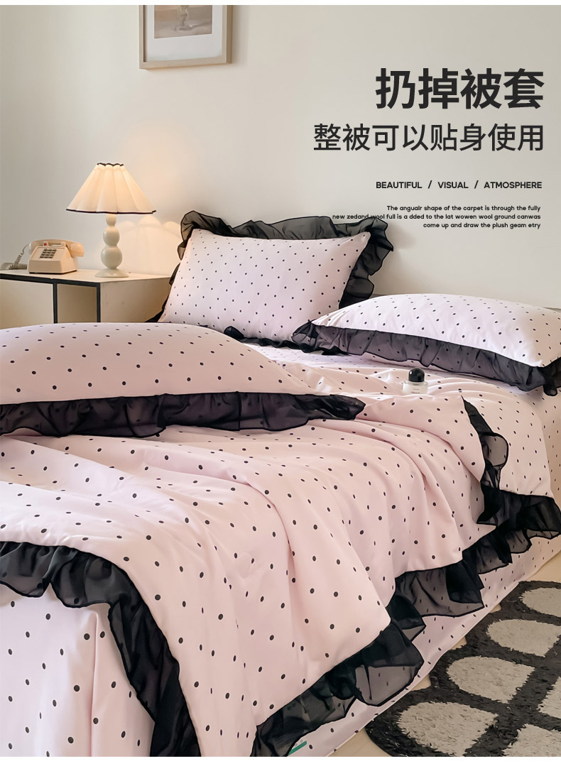 • 91家纺网 家纺一手货源 找家纺 绒世界 2026新款水洗真丝冰丝美拉德风花边夏被四件套空调被夏凉被 夏被-波点-粉