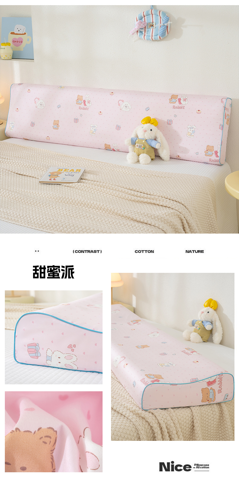 (总)良佐生活 2026年新款铂金全棉压线枕套,甜心熊,布布,调皮象,福宝,乐兔粉,乐兔蓝,太空探险,挖机小分队
