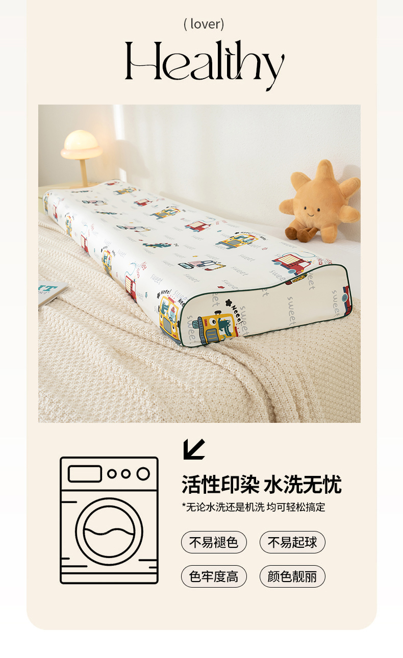 (总)良佐生活 2023新款A类60支全棉贡缎乳胶枕枕套儿童橡胶枕头套高低,口袋熊,恐龙宝宝,开心熊 粉,冰淇淋,恐龙乐园,花仙兔,贝塔 粉,挖掘车