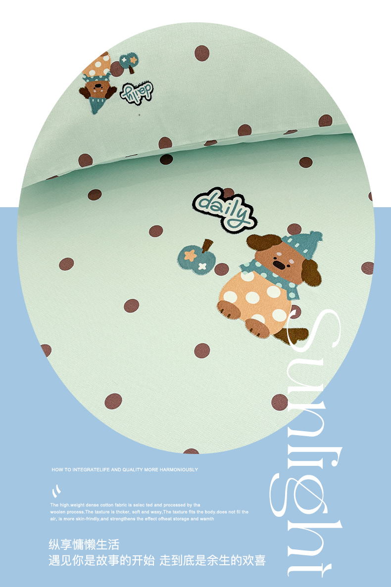(总)卧趣家纺 2026新款A类100Pro贡缎全棉纯棉卡通毛巾绣四件套-场景一,波点维尼,七彩小熊,曲奇小熊,甜心萌萌,条纹俏皮狗,小星星