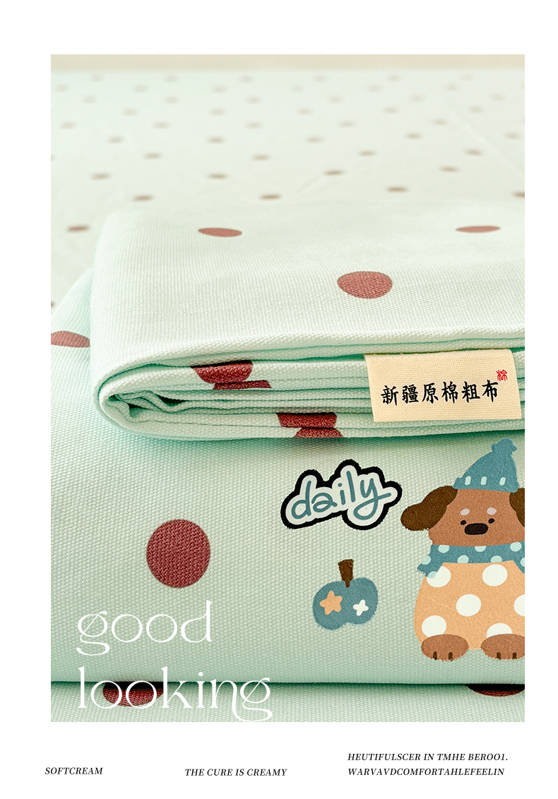 商品名称:卧趣家纺 2026新款全棉老粗布凉席席子床单单件单品床单单床单绒布贴系列 心动汪