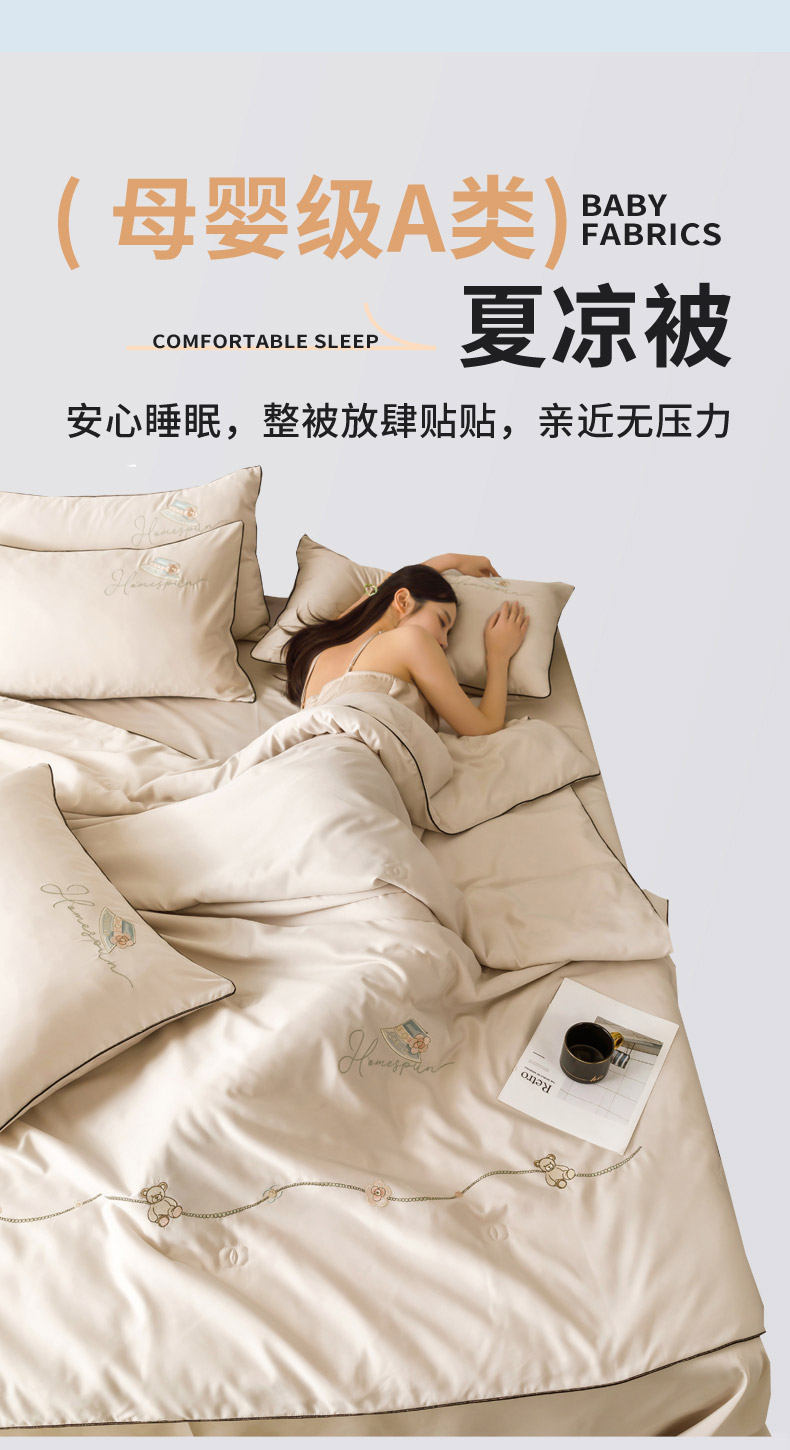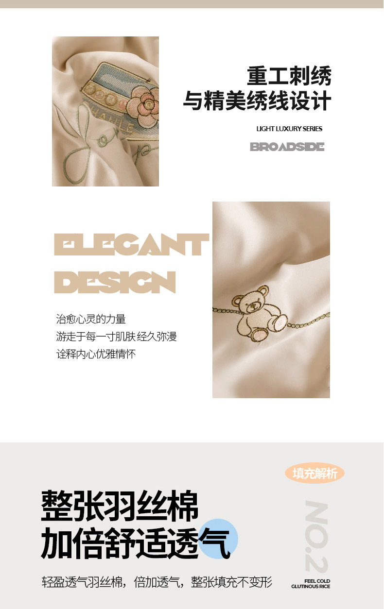 • 91家纺网 家纺一手货源 找家纺 丝印良品 2026新款刺绣水洗真丝夏被四件套公主日记系列-风格二 公主日记-香槟