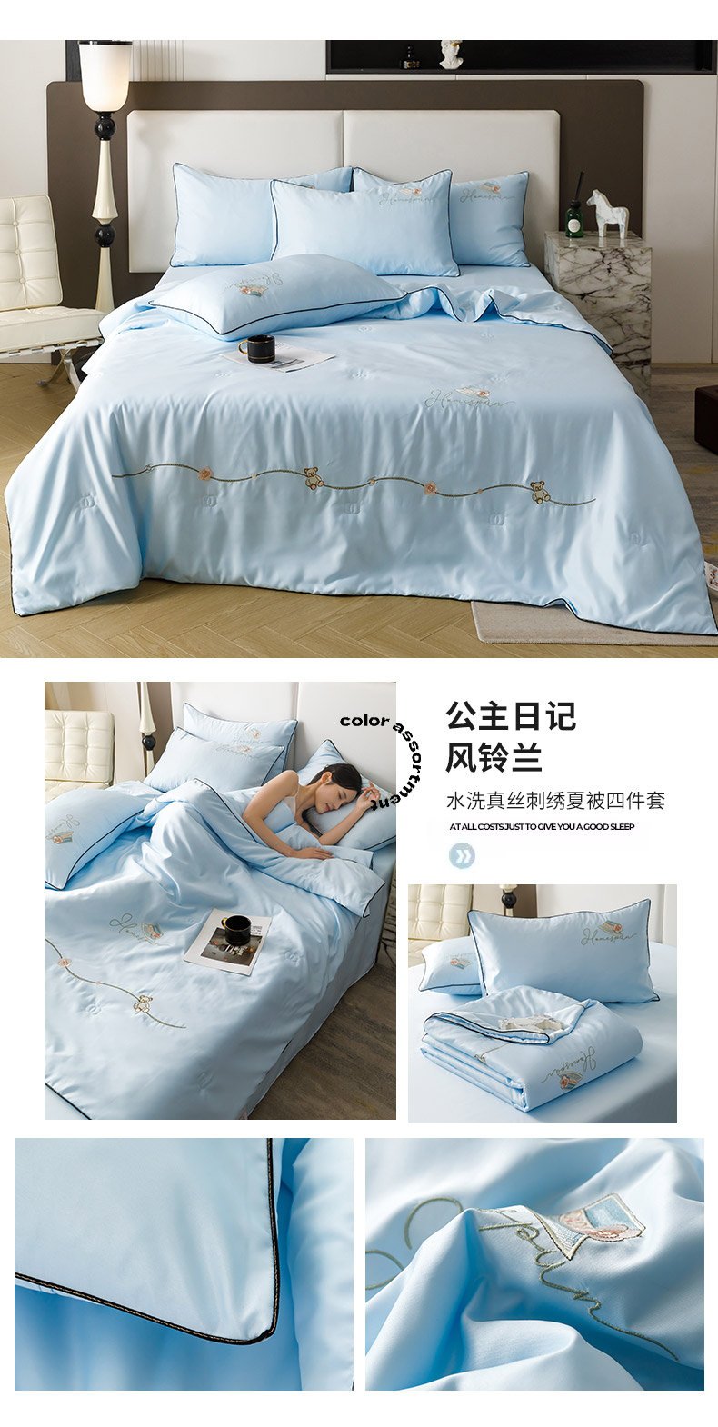 (总)丝印良品 2026新款刺绣水洗真丝夏被四件套公主日记系列-风格一,公主日记-白茶绿,公主日记-宾利蓝,公主日记-风铃兰,公主日记-高级灰,公主日记-香槟,公主日记-樱花粉,公主日记-月白