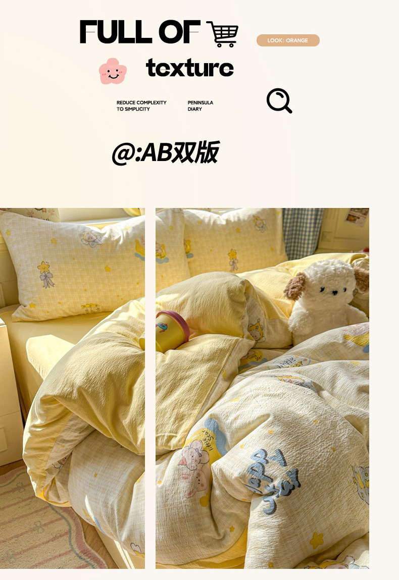 (总)柒月家居 2026新款韩系仿棉小格花边四件套,莓果,萌物,七分甜,甜桔,甜心狗,微笑,午后时光,线条猫,小柠檬,心愿狗,星星格,叶初开