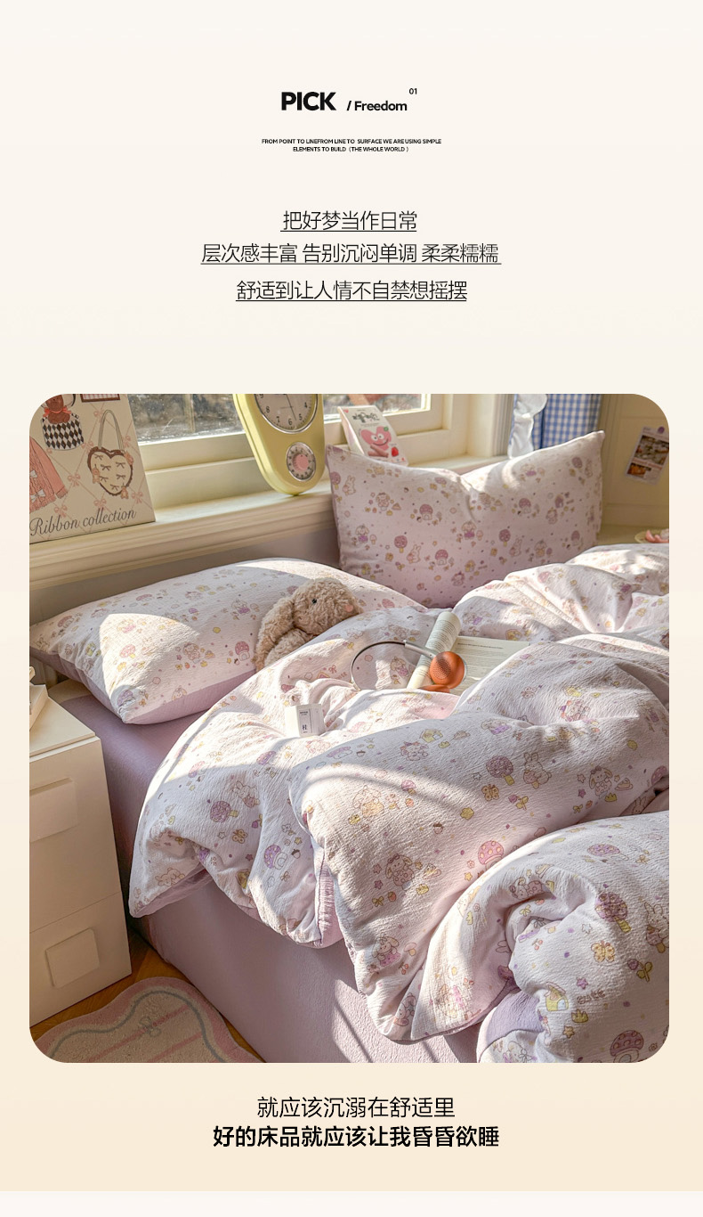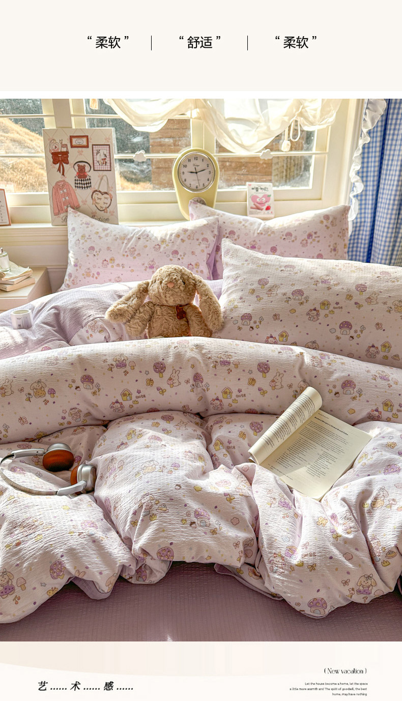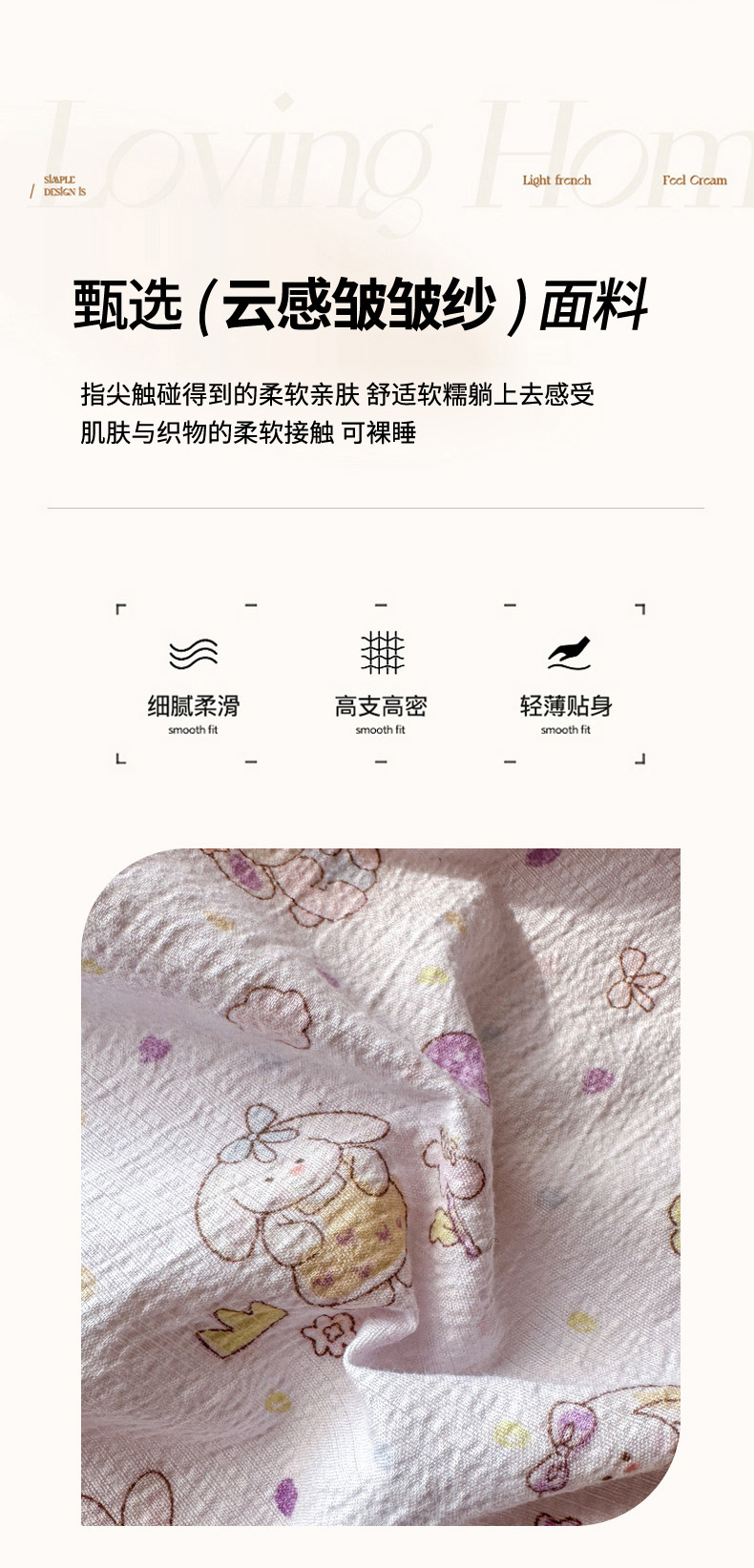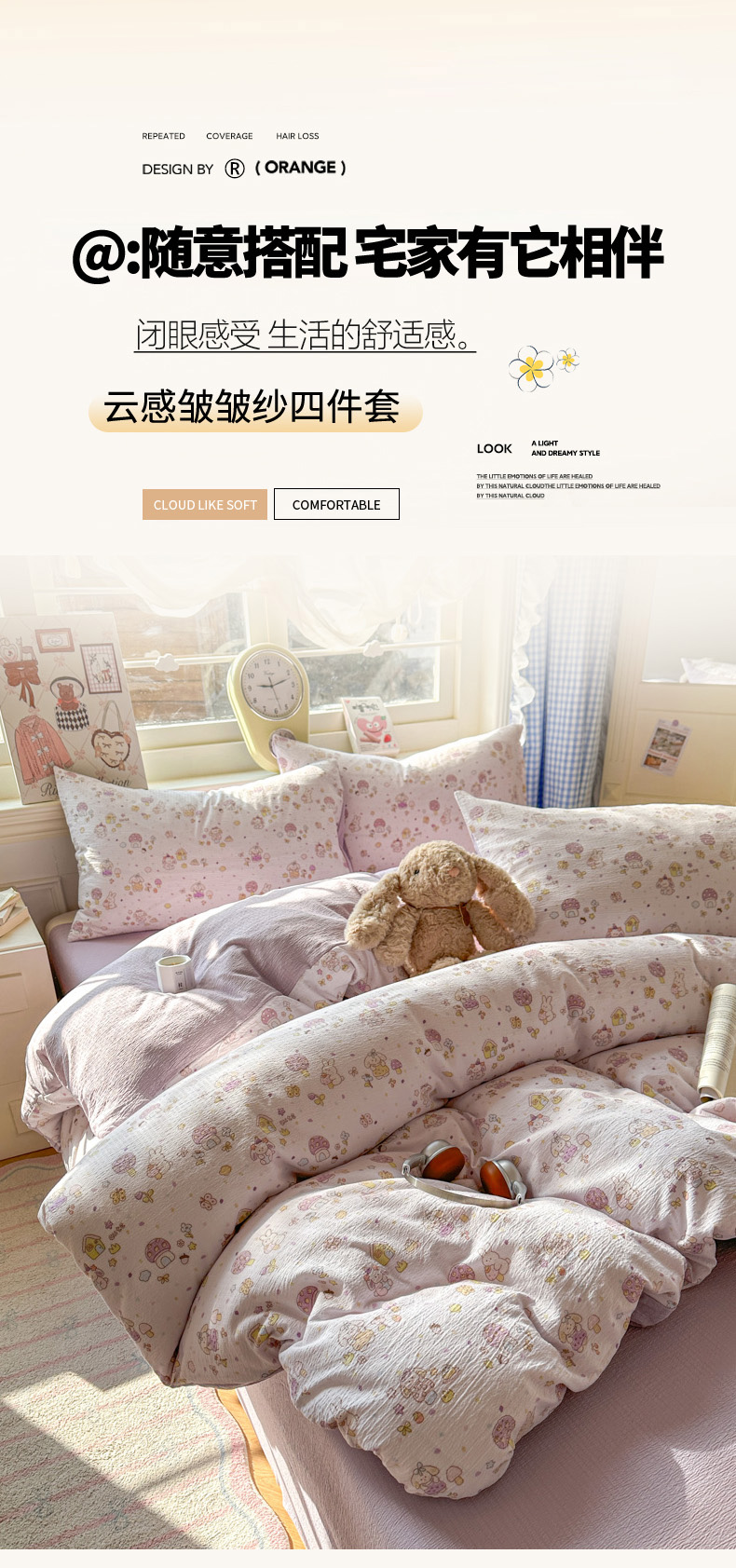 当前位置: 91家纺网 > 商品网购 > 床品套件 > 四件套 > 其它四件套 > 柒月家居 2026新款云感皱皱纱小清新木棉四件套 小鹿洛米