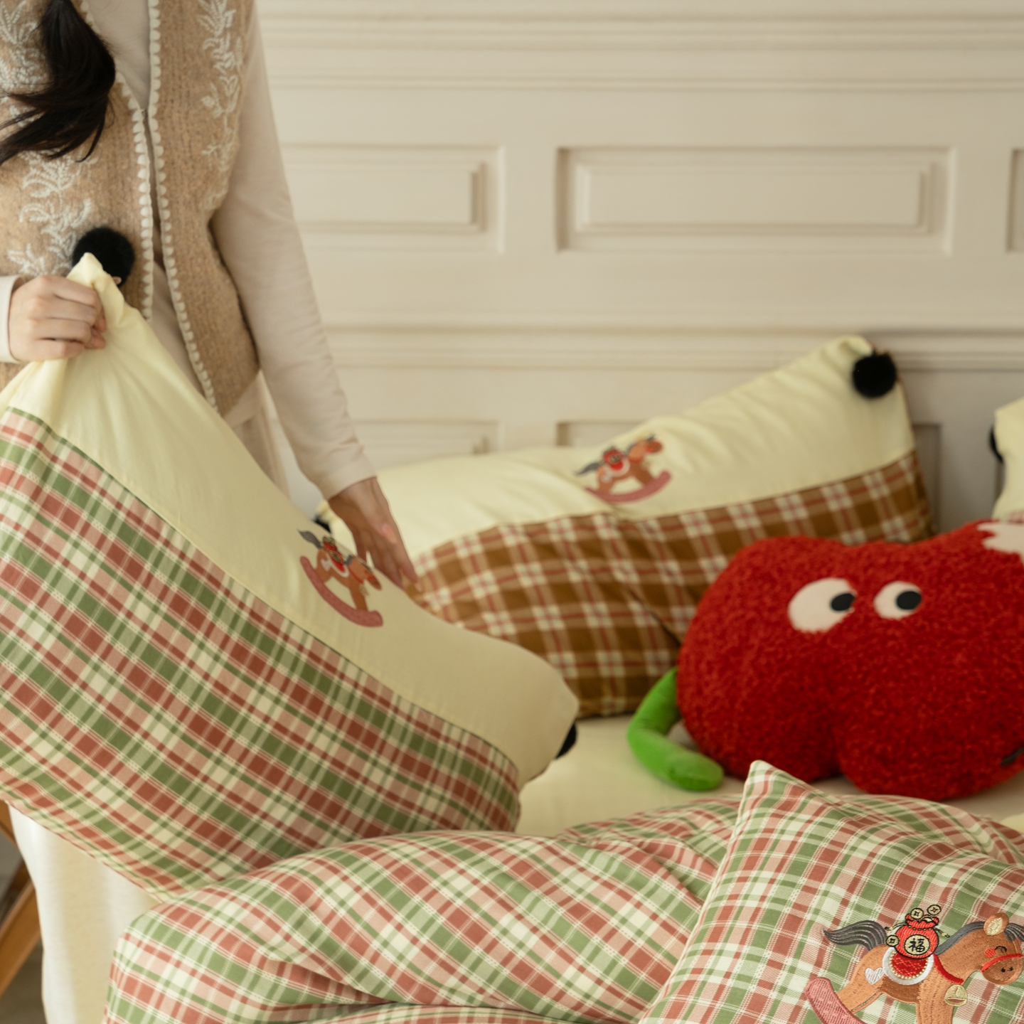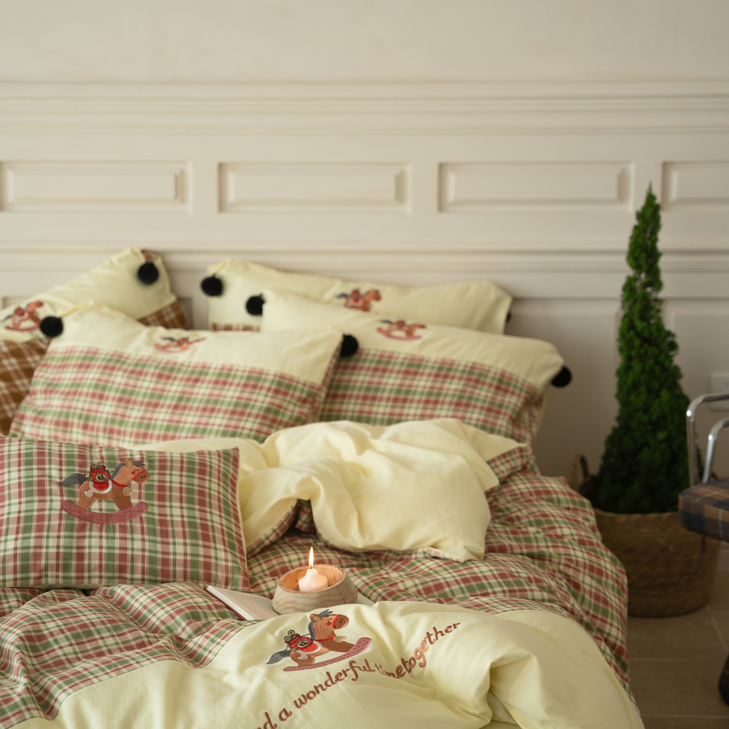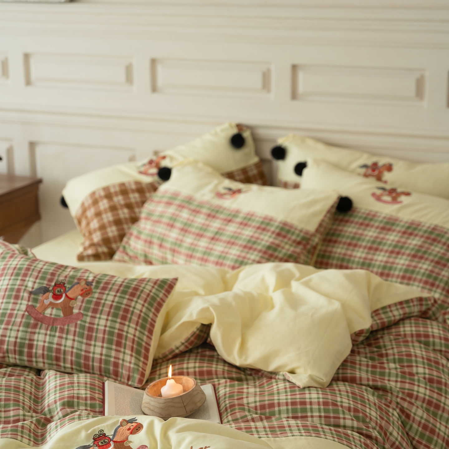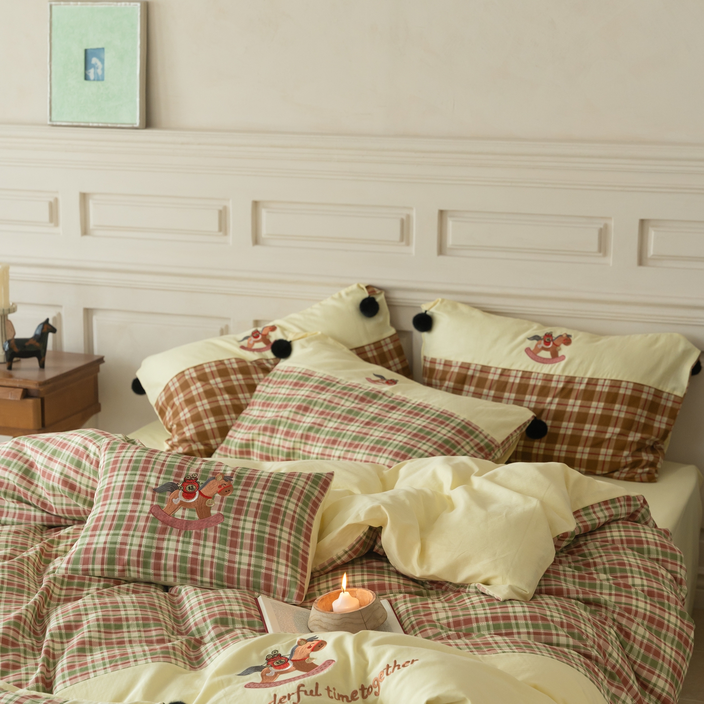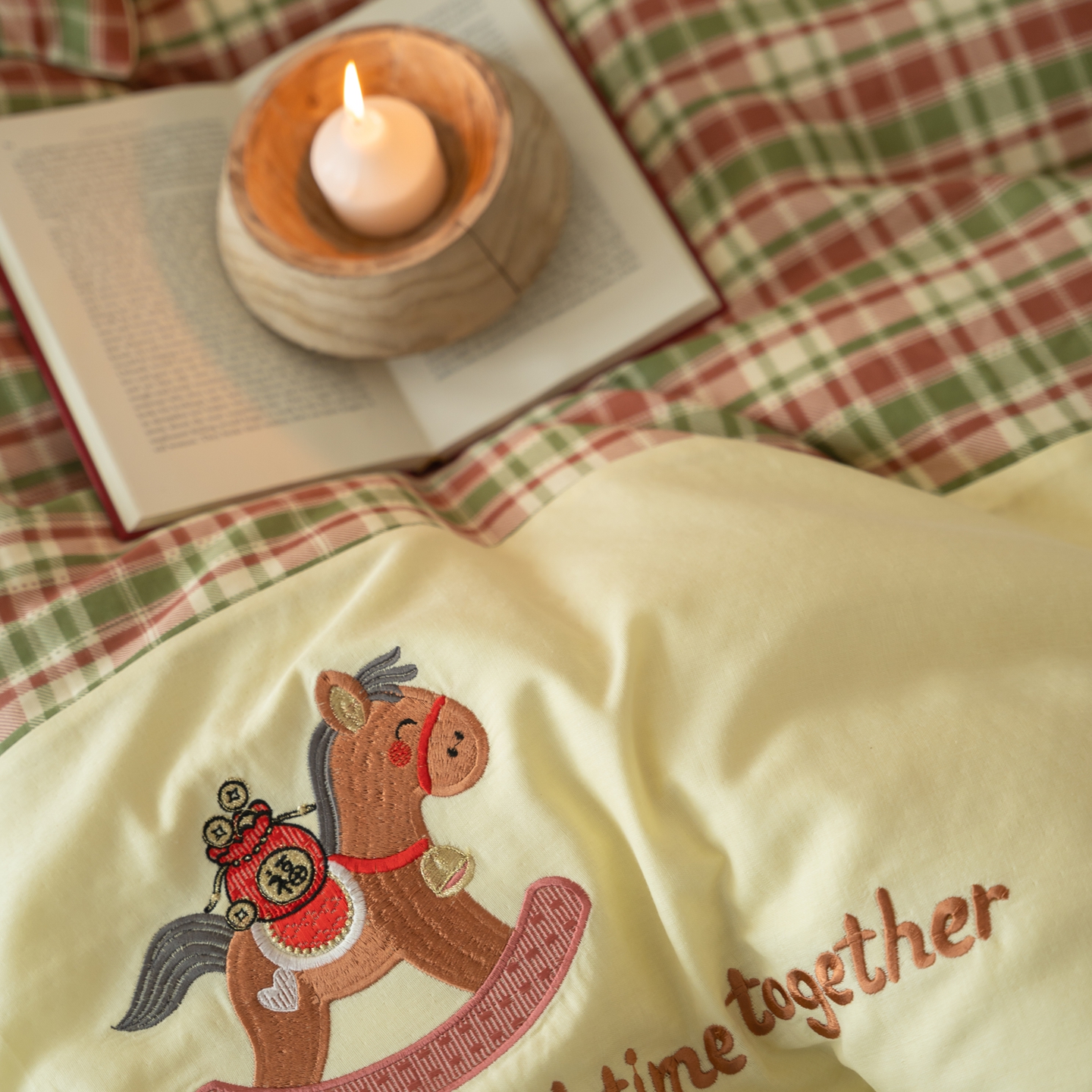 (总)优然居家纺 2026新款全棉双层纱刺绣四件套-马上有钱(控价260/328/348),马上有钱-黑格,马上有钱-黄格,马上有钱-绿格