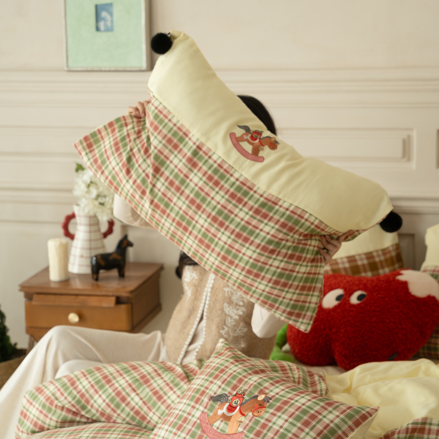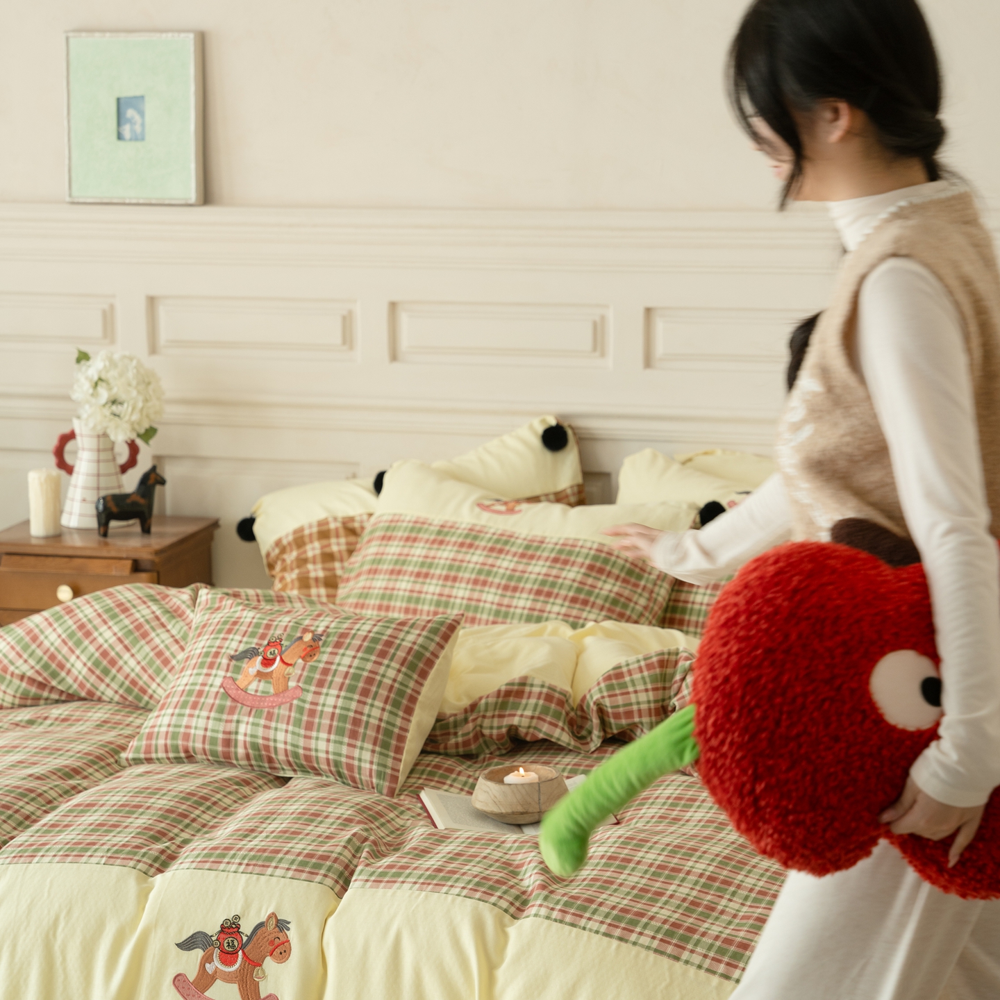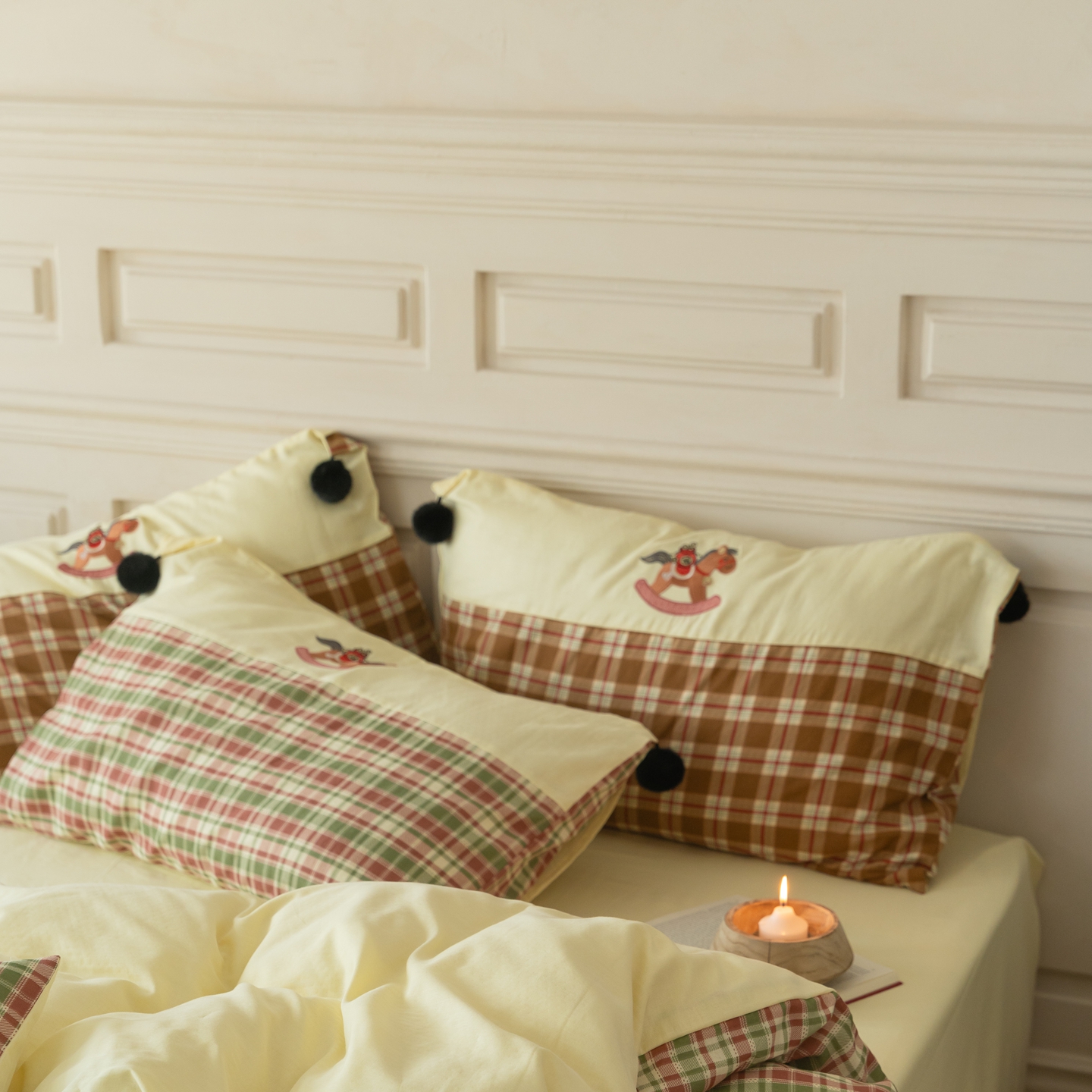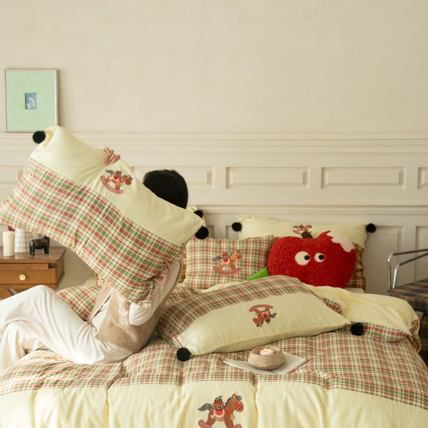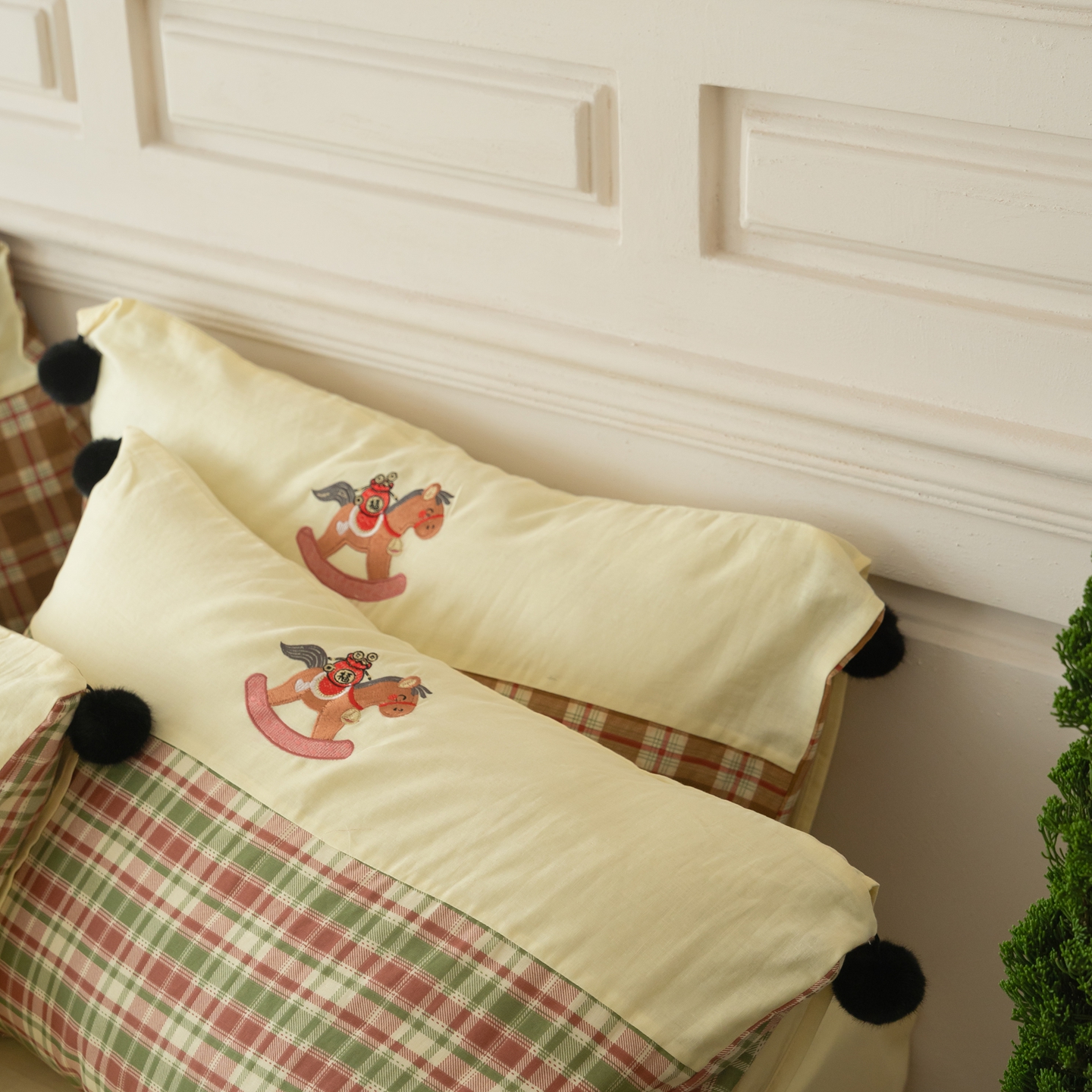 (总)优然居家纺 2026新款全棉双层纱刺绣四件套-马上有钱(控价260/328/348),马上有钱-黑格,马上有钱-黄格,马上有钱-绿格