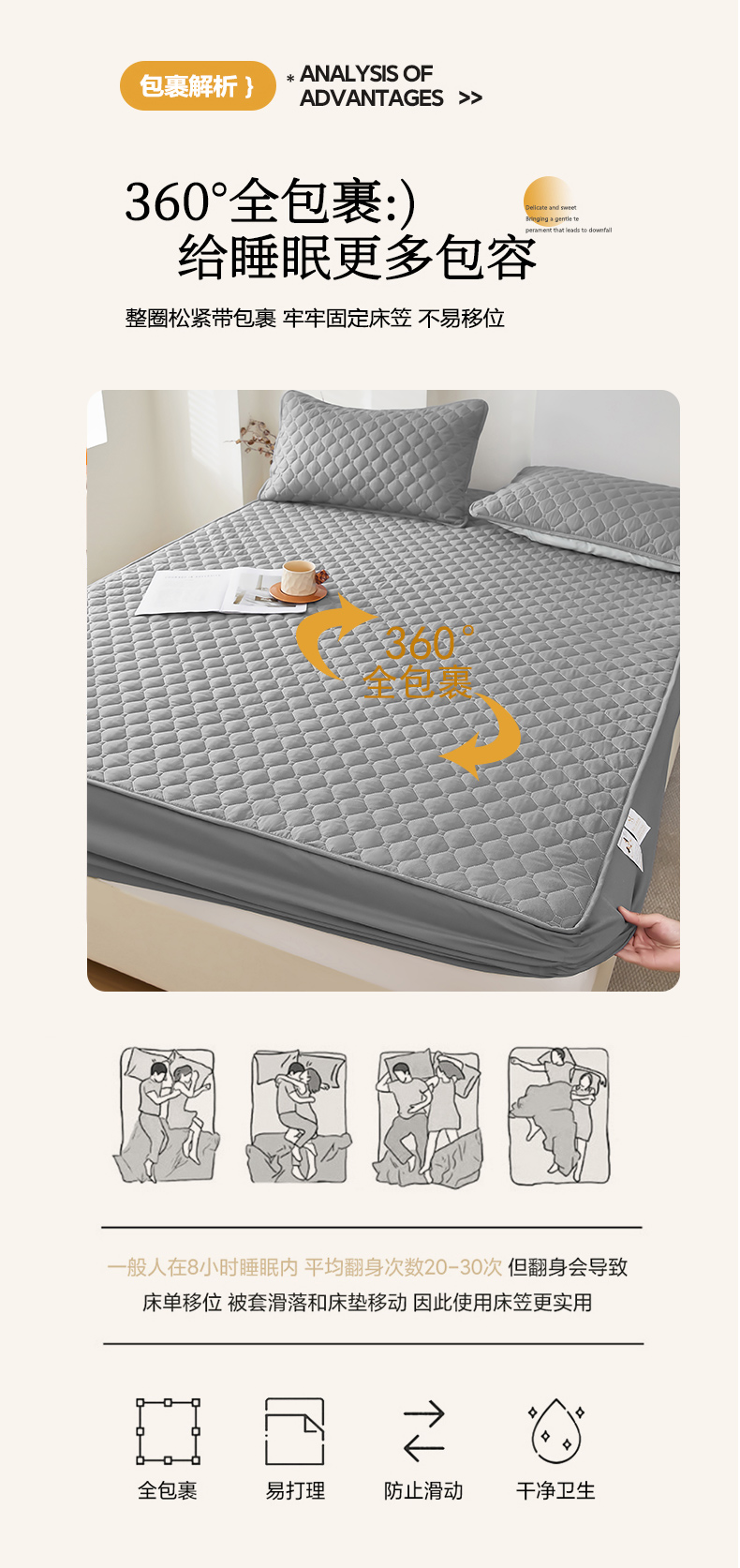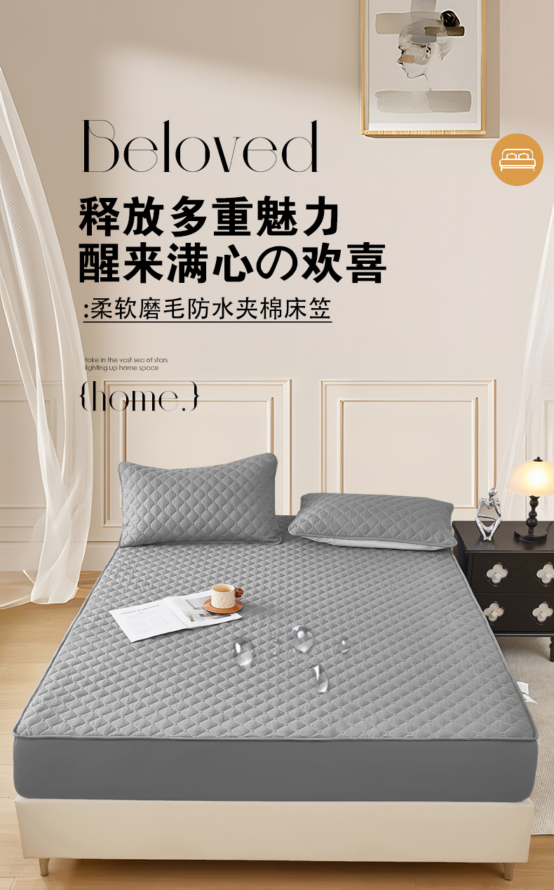 • 91家纺网 家纺一手货源 找家纺 三盛源 2026新款防水夹棉床笠单件A类防尘隔尿罩家用单双人床垫席梦思全包保护罩-缤纷系列(支持小批量定制尺寸) 缤纷系列-浅灰