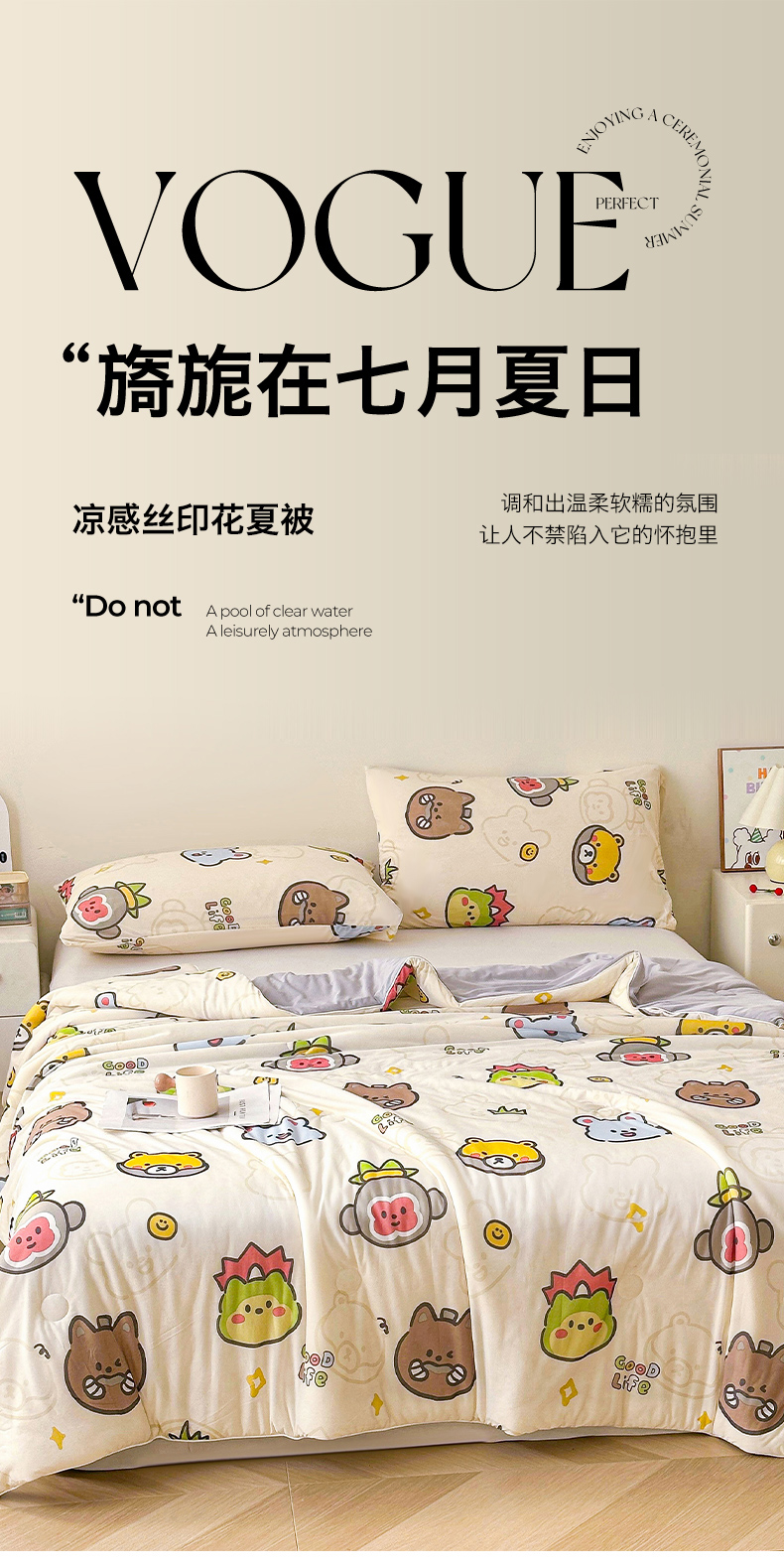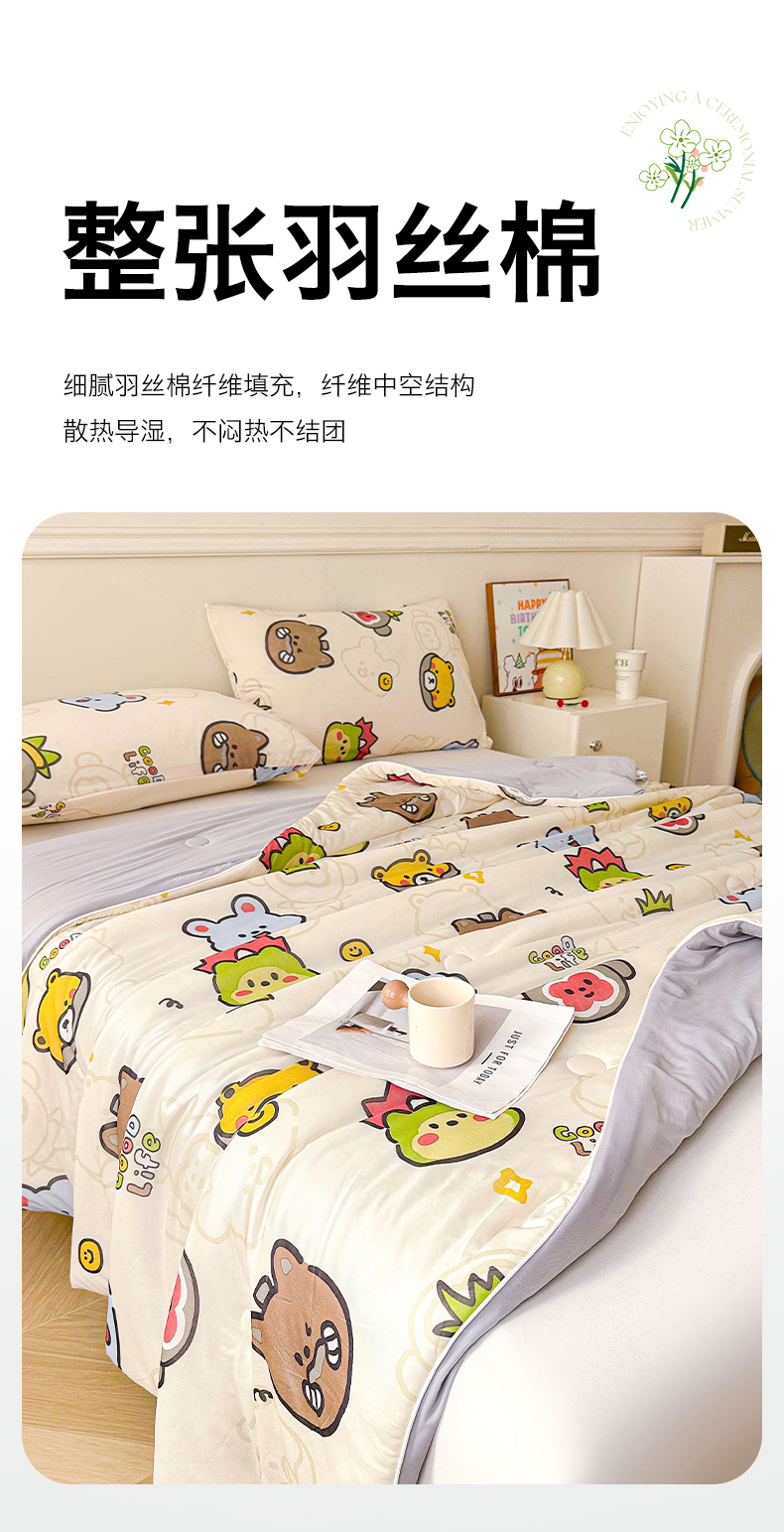 悦织语 2026新款凉感丝(含氨纶)双面凉感冰丝夏凉被空调被 萌宠乐园