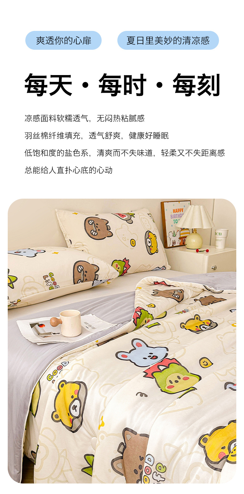 (总)悦织语 2026新款凉感丝(含氨纶)双面凉感冰丝夏凉被空调被,甜心草莓,比利小熊,好运加马,花花熊,花间集,花蔓,花漾,可爱熊猫,蓝格物语,萌宠乐园,青苹果,兔兔密语
